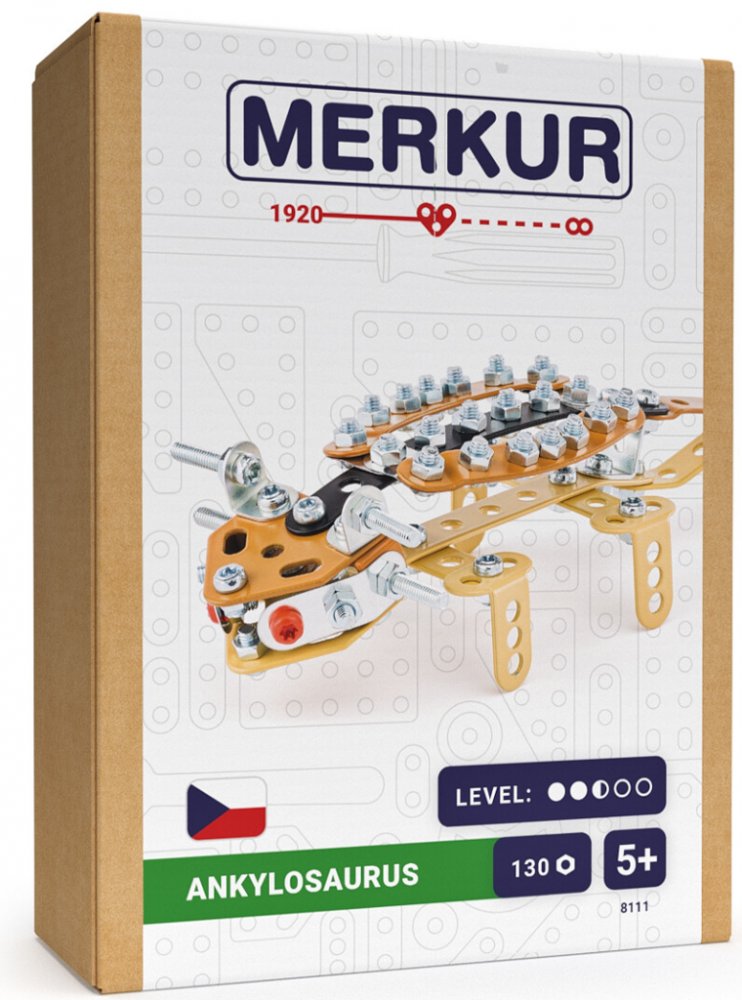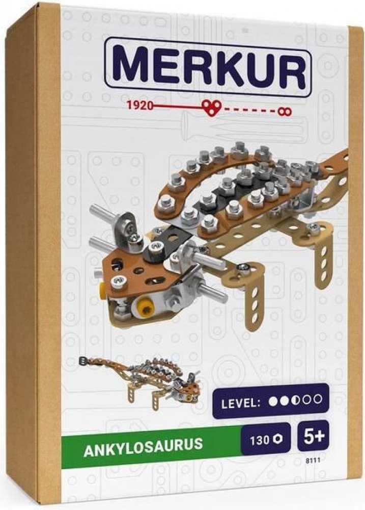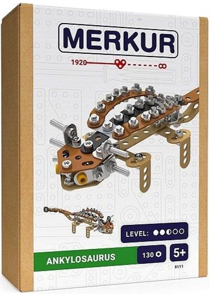 MERKUR 8111 Dinosauři: Ankylosaurus. Kvalitní, kovová konstrukční stavebnice, 130 dílků, model 20cm, součástí návod + pracovní nářadí. Vyrobeno v Česku.