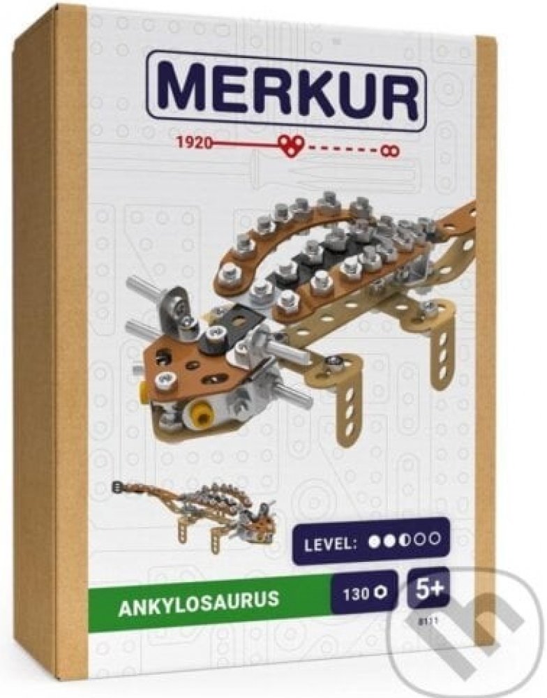 Kovový model pravěký ještěr Ankylosaurus z kolekce dinosaurů obsahuje součástky nutné pro sestavení tohoto modelu. V balení najdete podrobný návod, Merkur sadu nářadí a unikátní Merkur díly. Merkur díly jsou univerzální a tak vás neomezí v jakékoli modifikaci a nápadu. Stavebnici tak můžete sestavit podle přiloženého návodu nebo čistě podle svých představ. Se sestavenými modely si lze hrát, jsou velmi odolné. Podporuje a rozvíjí manuálních schopnosti, logické myšlení, soustředění.