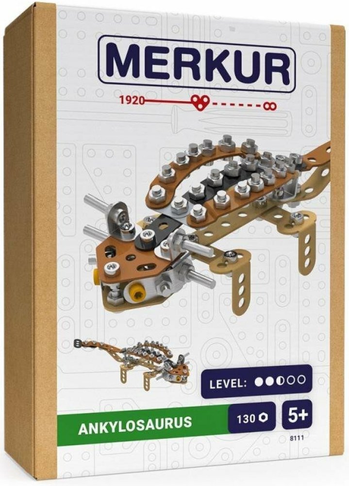 Kovový model pravěký ještěr Ankylosaurus z kolekce dinosaurů obsahuje součástky nutné pro sestavení tohoto modelu. V balení najdete podrobný návod, Merkur sadu nářadí a unikátní Merkur díly. Merkur díly jsou univerzální a tak vás neomezí v jakékol...