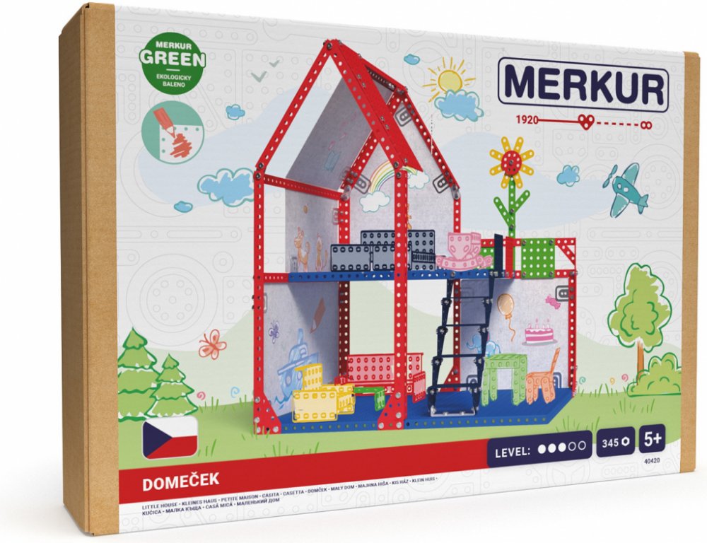 Domeček je kompatibilní se sadou 48018, která obsahuje nábytek do domečku pro panenky. Sada obsahuje: 354 dílů. Úroveň Merkur obtížnosti: 3. Ekologicky baleno. Baleno v krabičce.