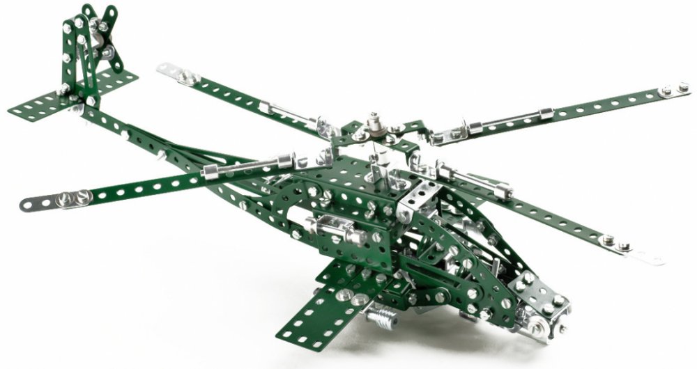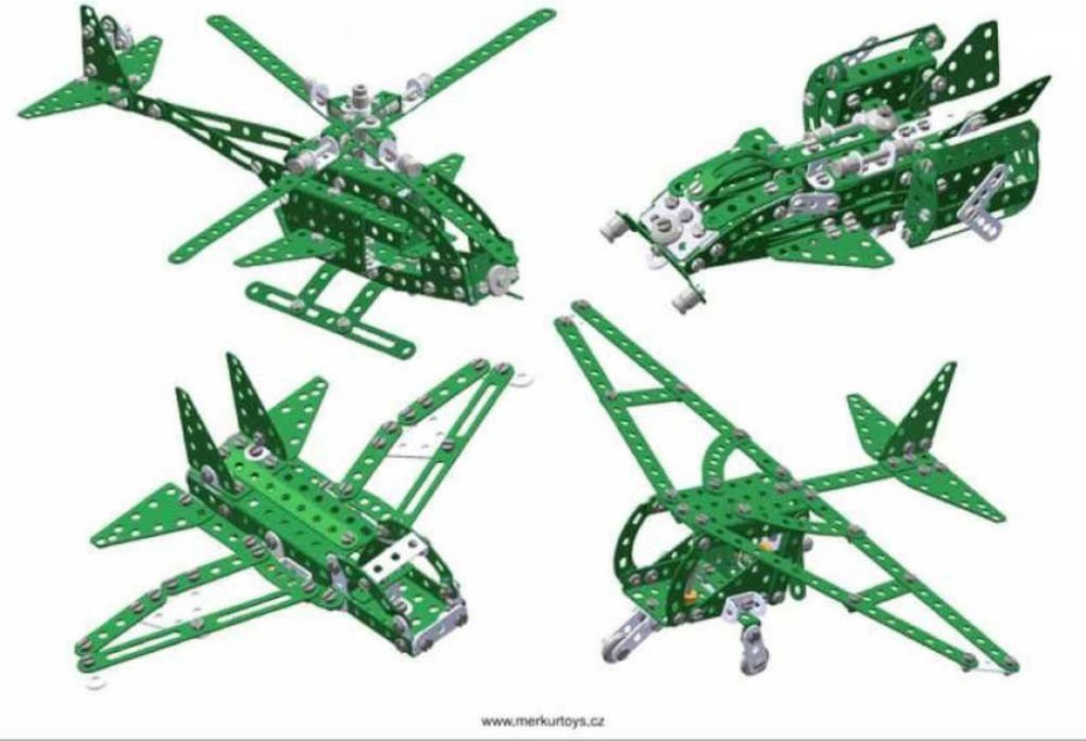 - Stavebnice obsahuje základní sestavu součástek a ještě navíc další součástky nutné pro stavbu helikoptéry a dalších modelů.