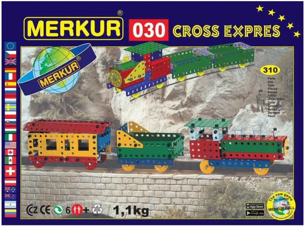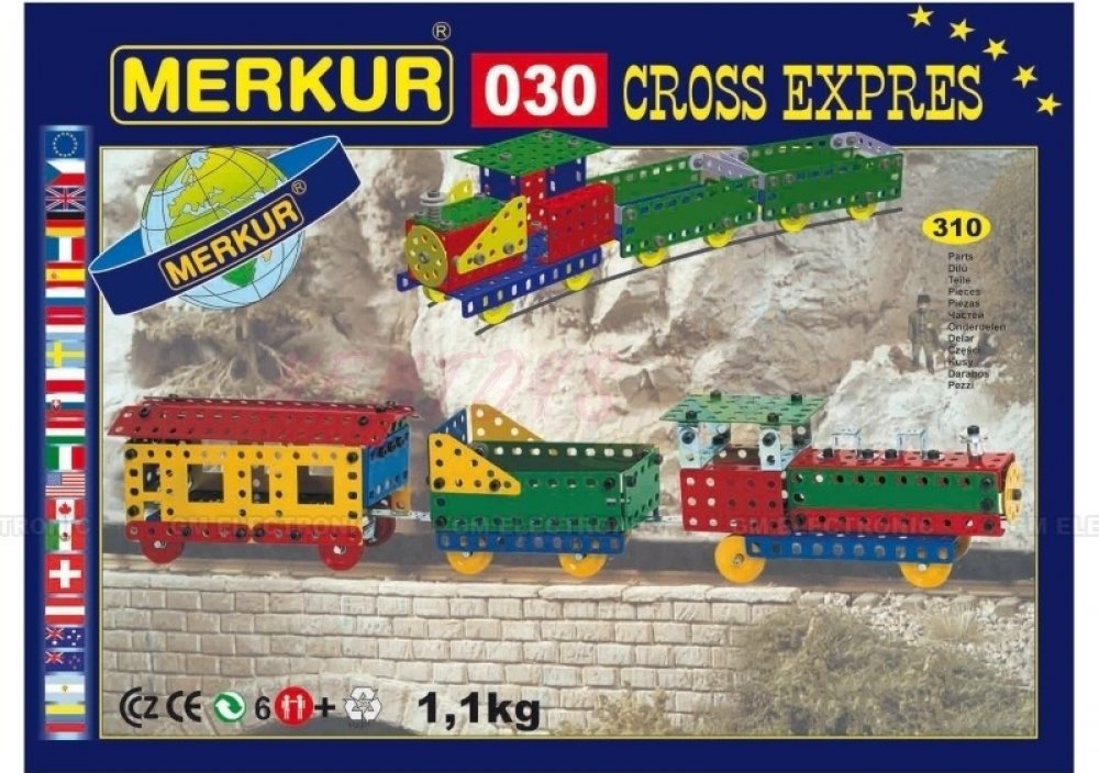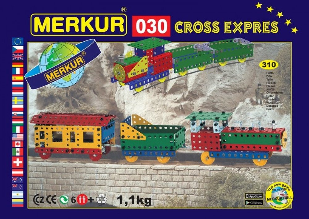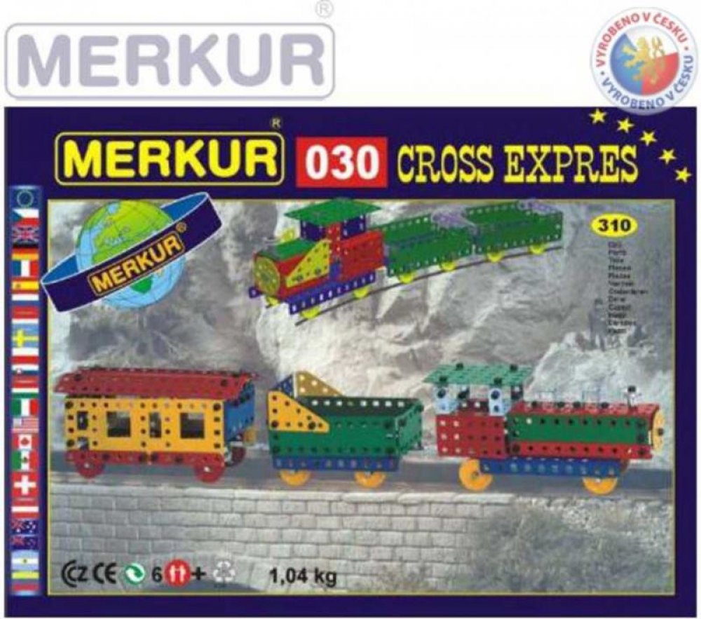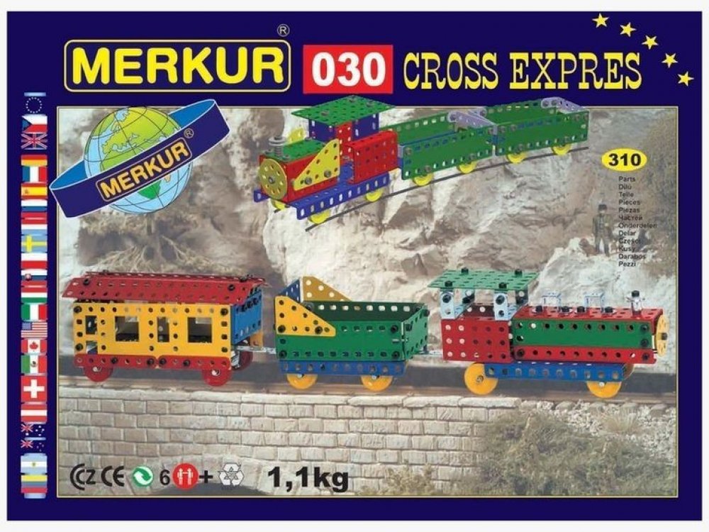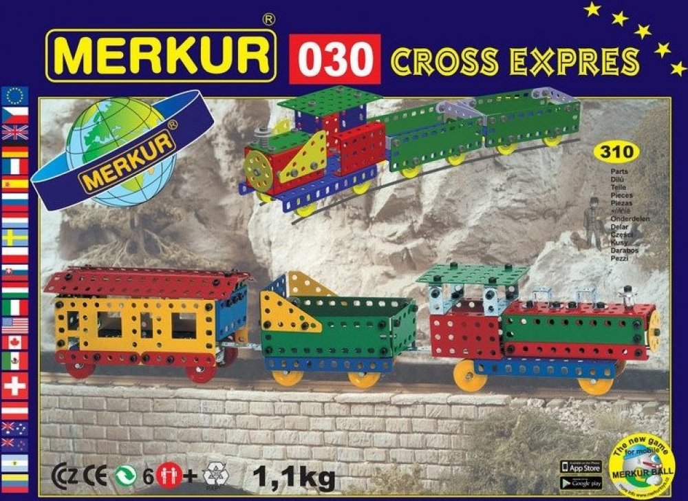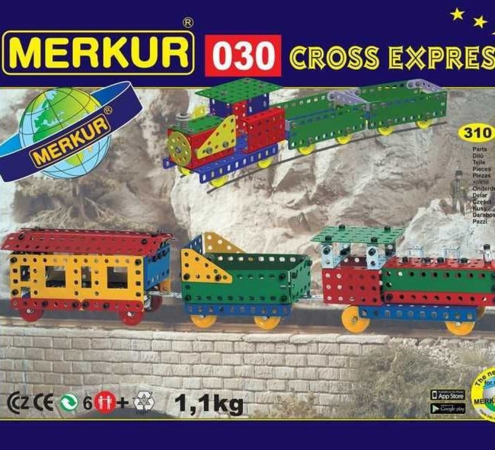 MERKUR 030 CROSS Express je stavebnice, ze které je možné dle návodu sestavit 10 různých modelů např. lokomotivu, tendr a osobní vagón. Malí konstruktéři mohou postavit i model dle svých představ, fantazii se meze nekladou. Stavebnice obsahuje 310 dílků včetně návodu a nářadí. Vhodné i pro děti, které s Merkurem začínají. Se sestavenými modely si lze hrát, jsou velmi odolné. Rozměr balení: 36 x 27...