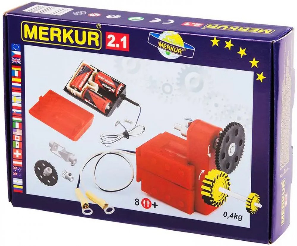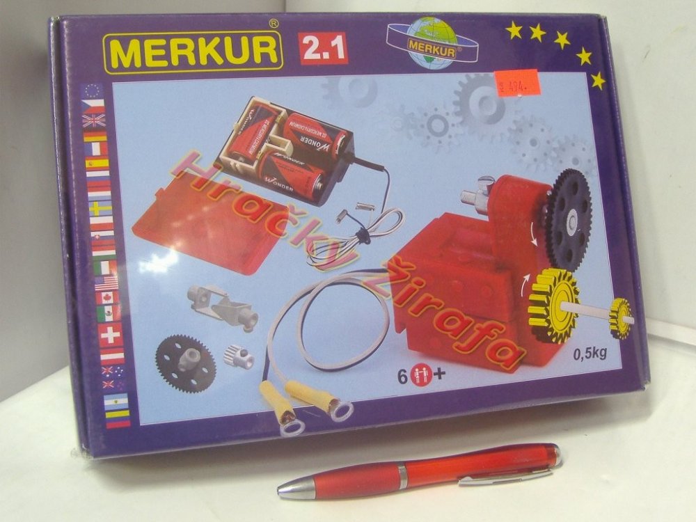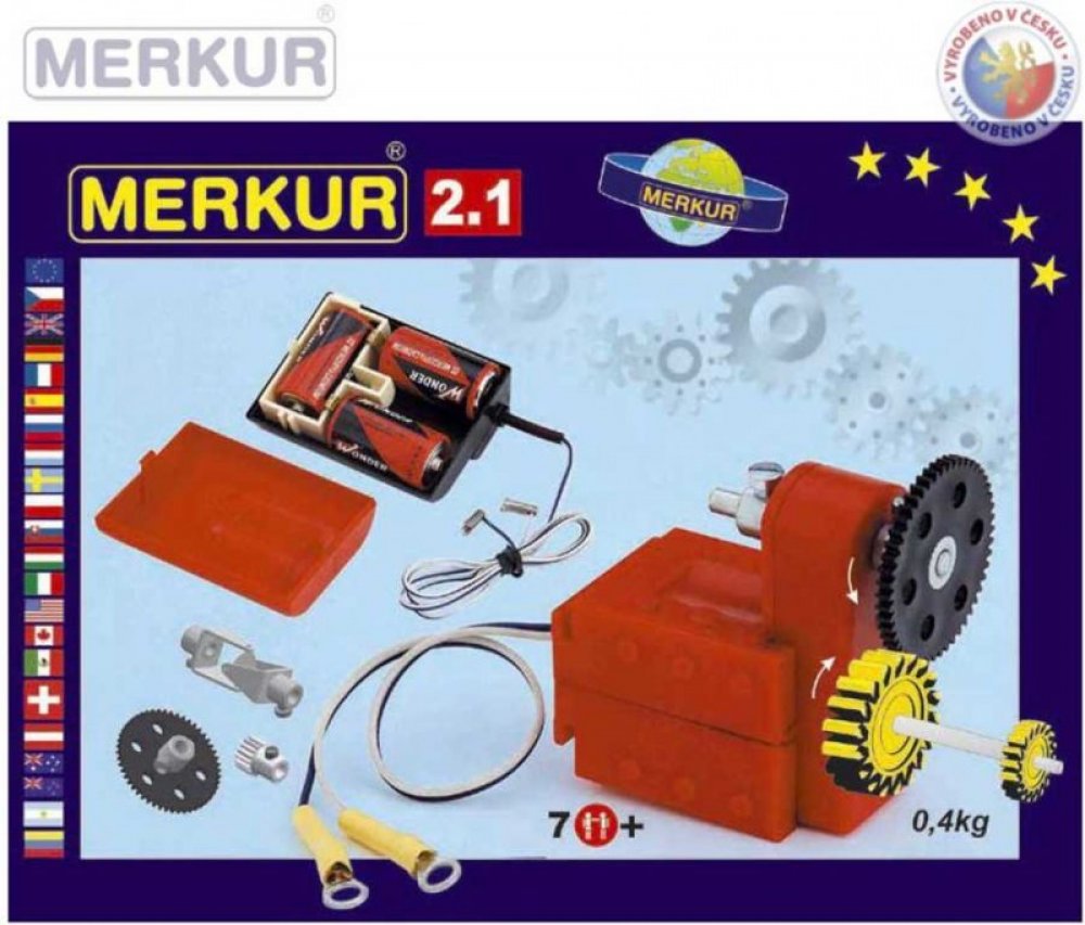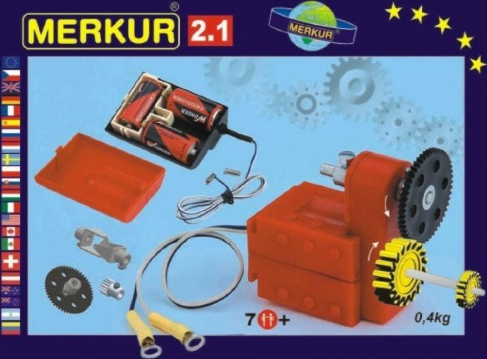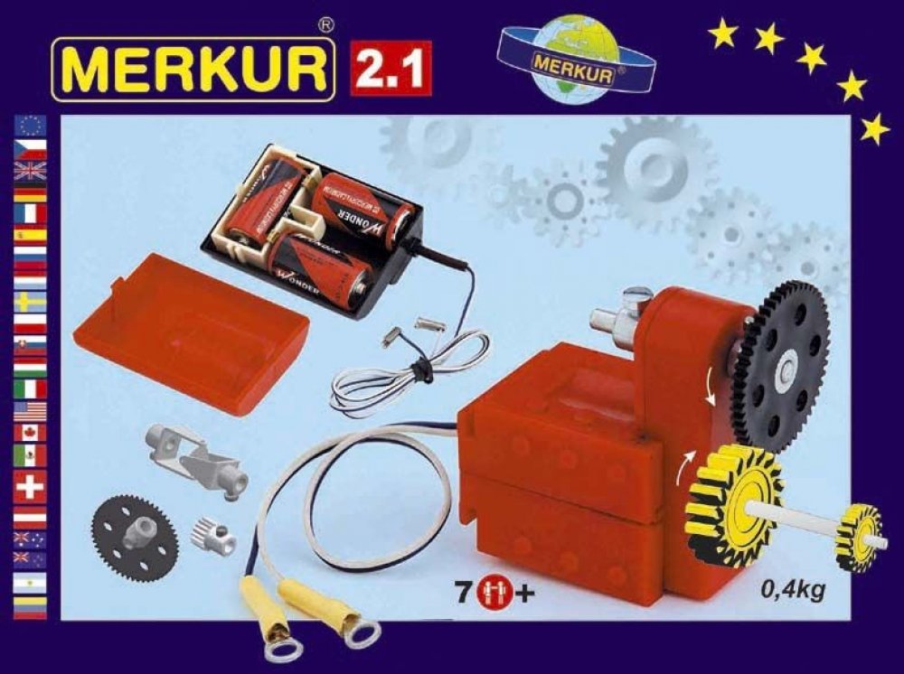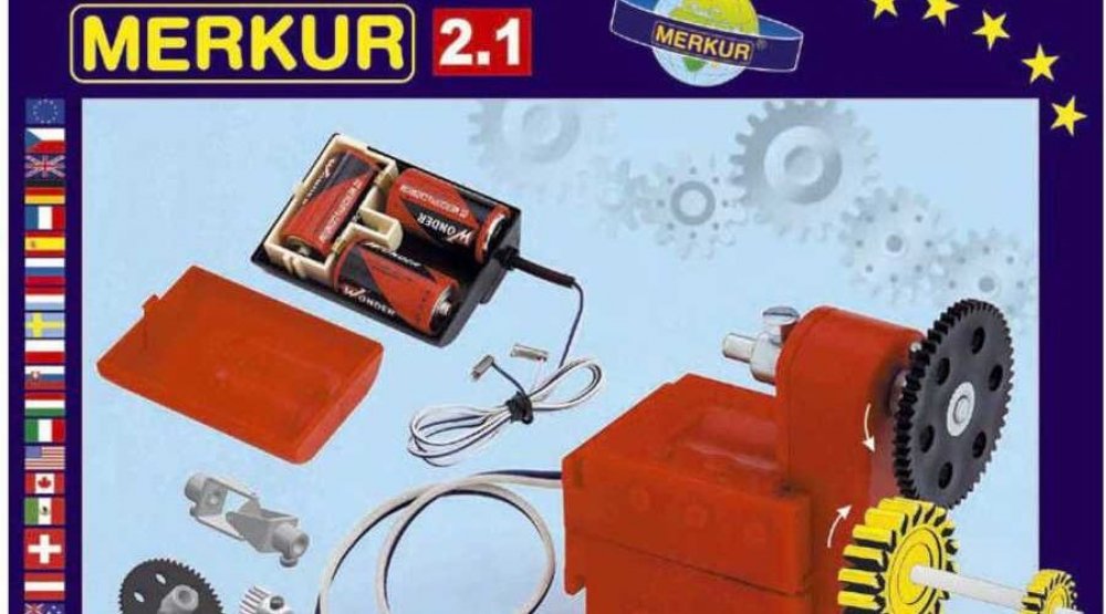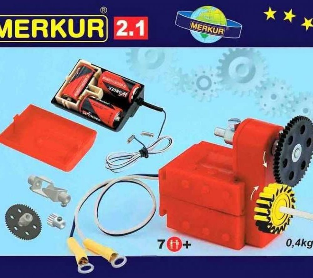 Stavebnice Merkur M 2.1 Elektromotorek - ideální odplněk ke všem větším stavebnicím, umožňující rozpohybovat postavené modely. Elektormotorek s dvourychlostní převodovkou a několika ozubenýmí koly + unvezrální pouzdro na baterie. Podrobný popis: