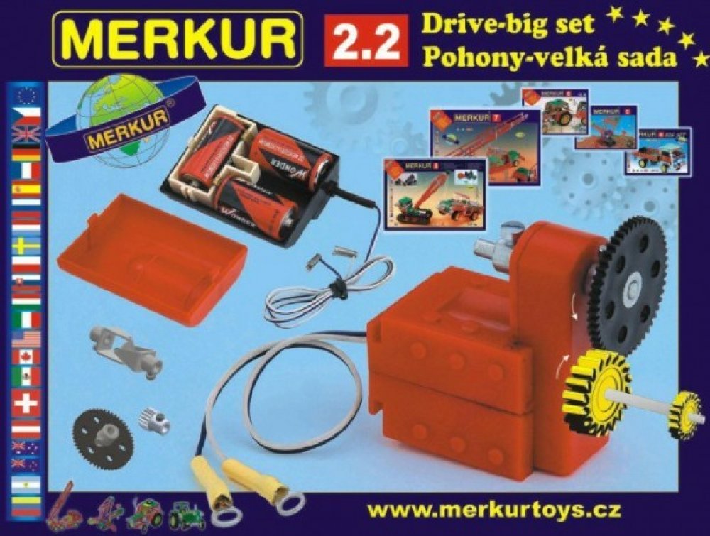 Ideální doplněk ke všem větším stavebnicím umožňující rozpohybovat postavené modely. Obsahuje elektrický motorek s dvoustupňovou převodovkou, ovládací pouzdro na baterie a základní sadu ozubených koleček. Napájecí pouzdro je určeno pro 3 monočlánky typu C (nejsou součástí dodávky). Motorek má 2 stupně rychlosti : 180 ot./min a 1120 ot./min.