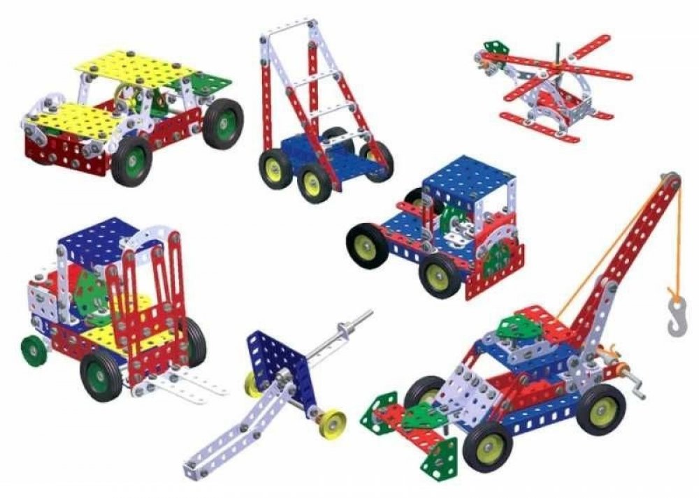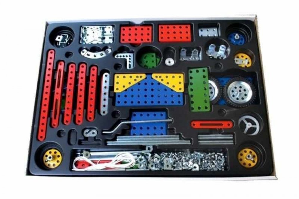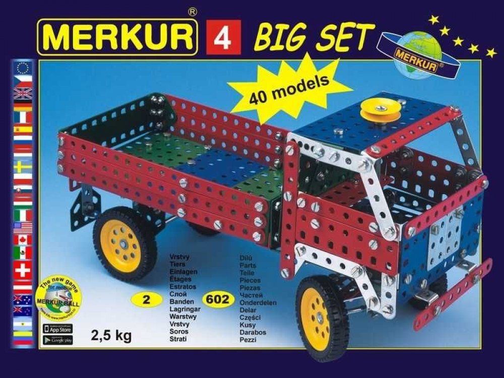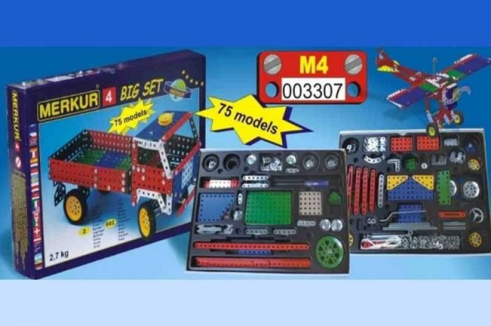 Dvouvrstvá klasická velká stavebnice Merkur 4. Stavebnice obsahuje mimo základní sestavu dílů také součástky nutné pro stavbu nákladních automobilů, formulí a letadel. Součástí stavebnice je samozřejmě velká návodová knížka s návodem na stavbu 40 různých modelů jako je nákladní automobil, lunochod, buggy, formule, jeřáb atd. Vhodné i pro děti, kteří s Merkurem začínají. Se sestavenými modely si lz...