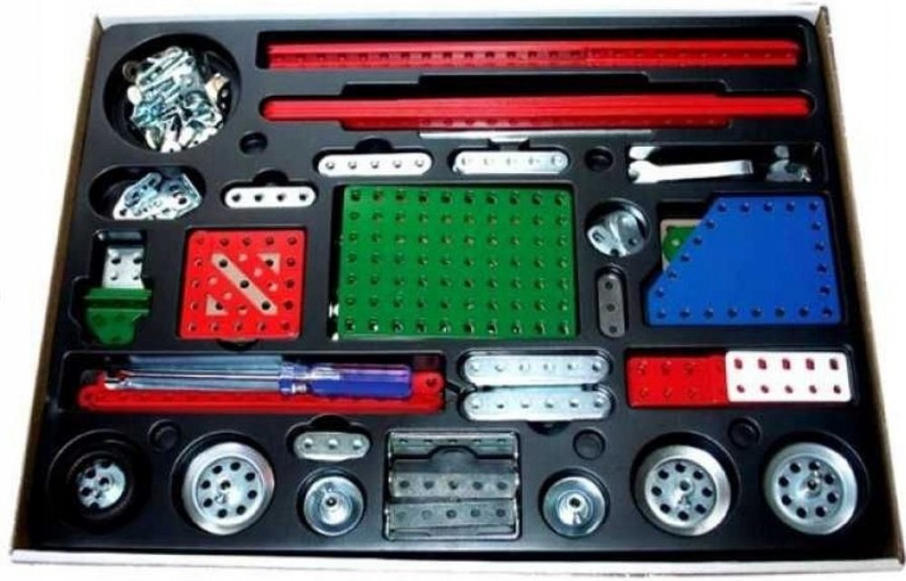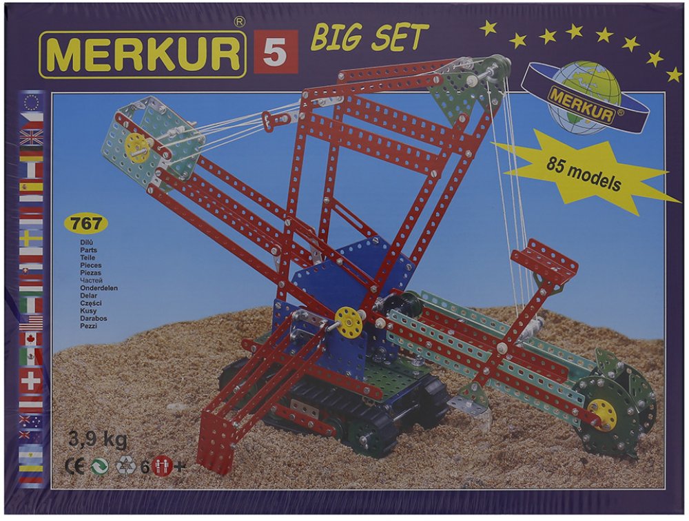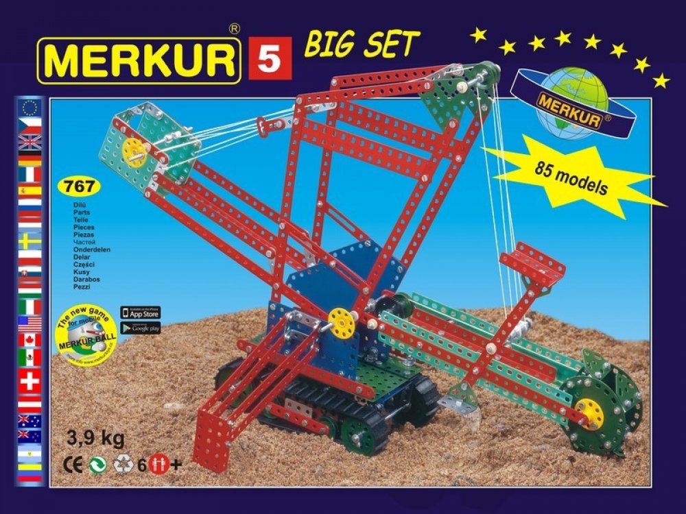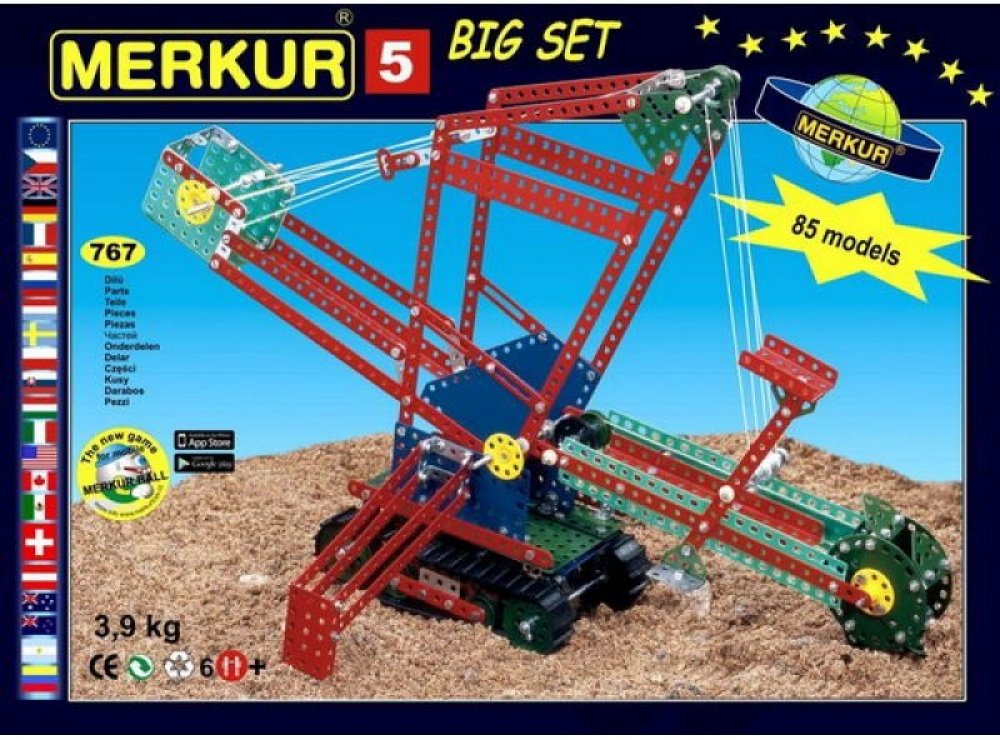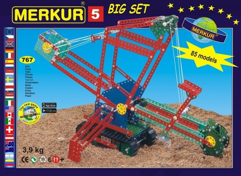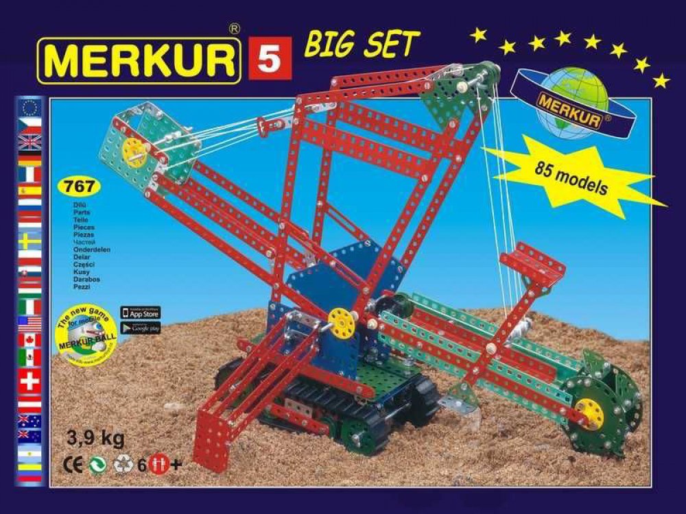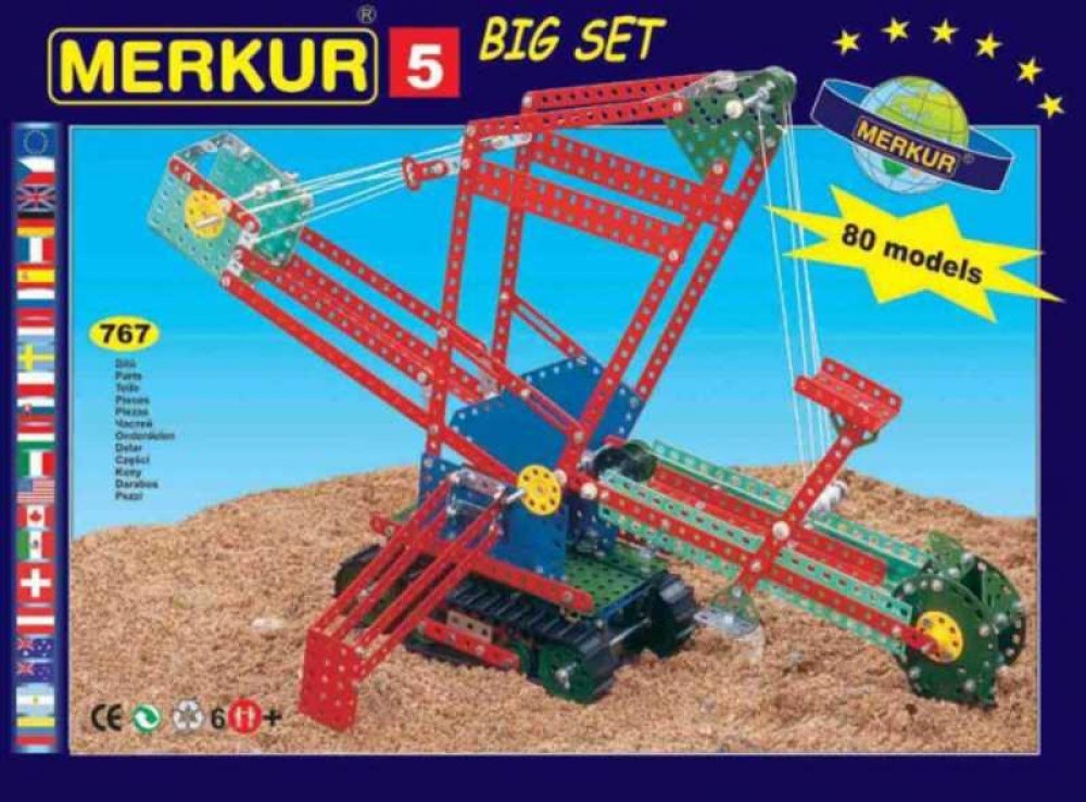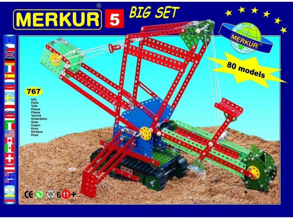 Stavebnice Merkur 5 - třívrstvá klasická velká stavebnice. Stavebnice obsahuje všechny součástky jako Merkur M4 a ještě celou řadu dalších součástek jako jsou pásy, velká kola, dlouhé úhelníky, pásky a další. Podrobný popis:Stavebnice Merkur 5 - třívrstvá klasická velká stavebnice. Stavebnice obsahuje všechny součástky jako Merkur M4 a ještě celou řadu dalších součástek jako jsou pásy, velká kola, dlouhé úhelníky, pásky a další. Součastí balení je velká návodová knížka.