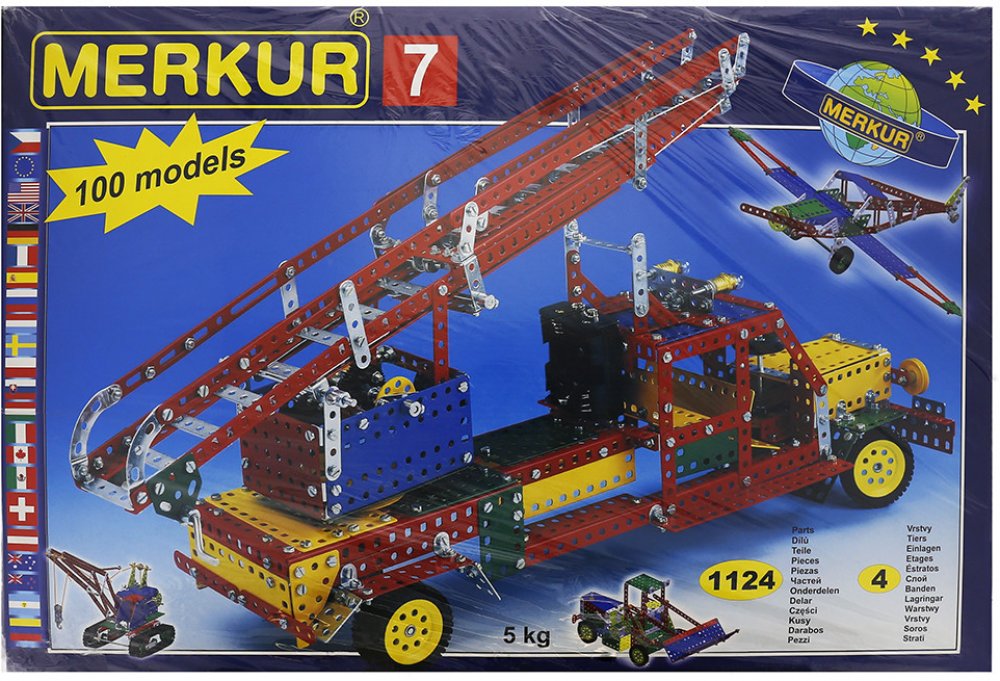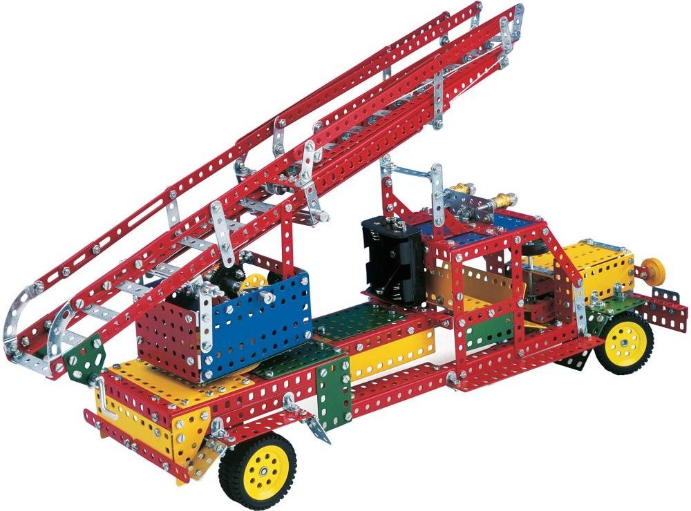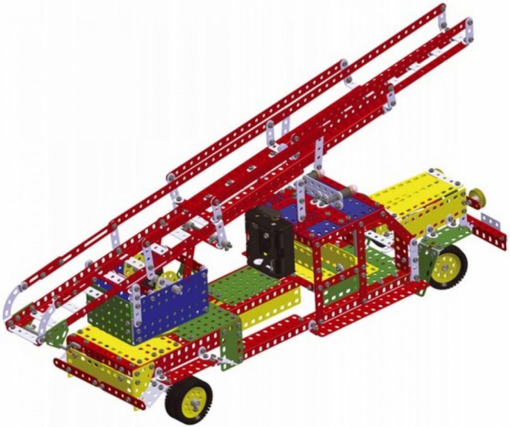 Čtyřvrstvá klasická velká stavebnice. Stavebnice obsahuje základní sestavu součástek a ještě navíc další součástky nutné pro stavbu velkého požárního auta, velkých jeřábů a dalších modelů. Součástí stavebnice je velká návodová knížka s návodem na stavbu hasičského automobilu, autojeřábu.