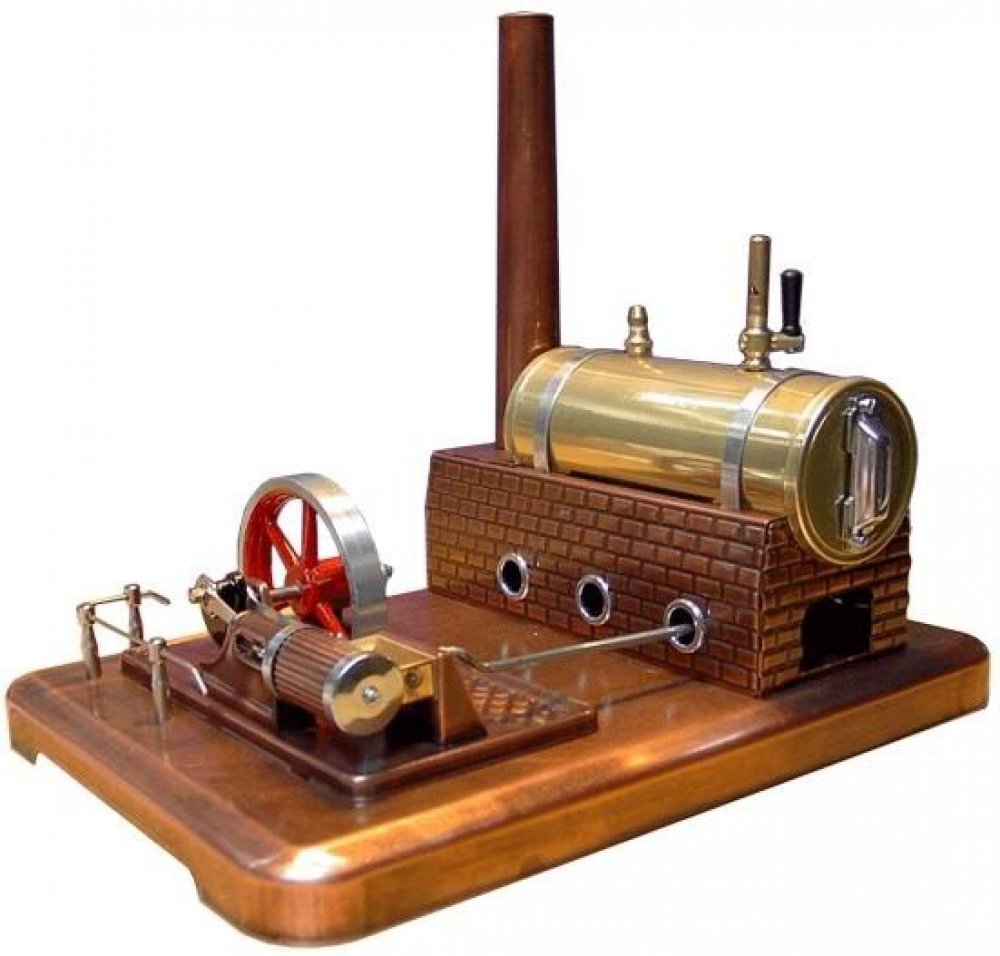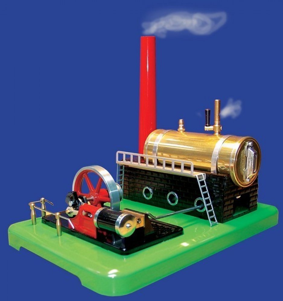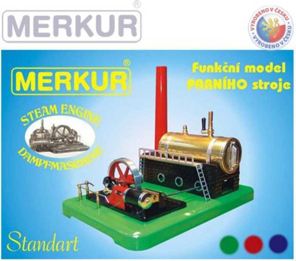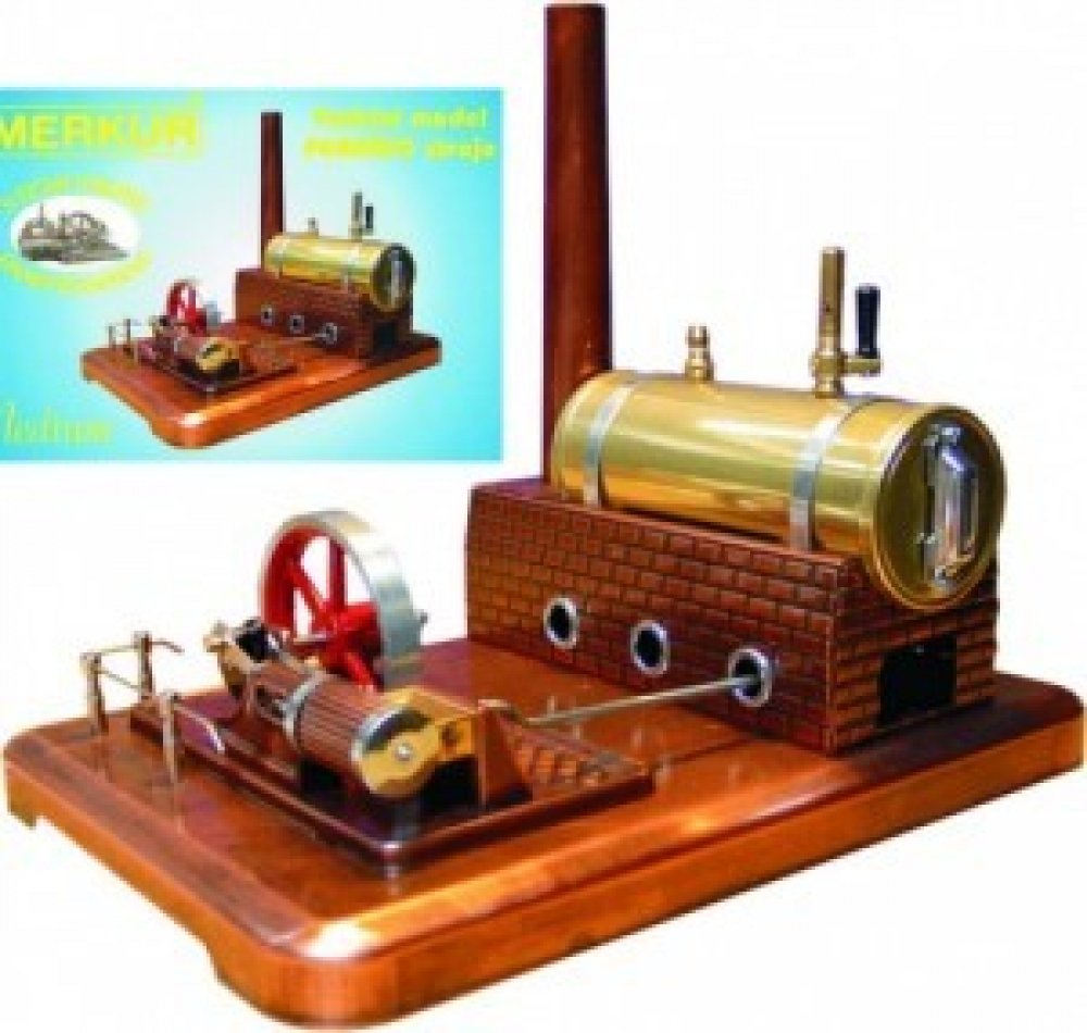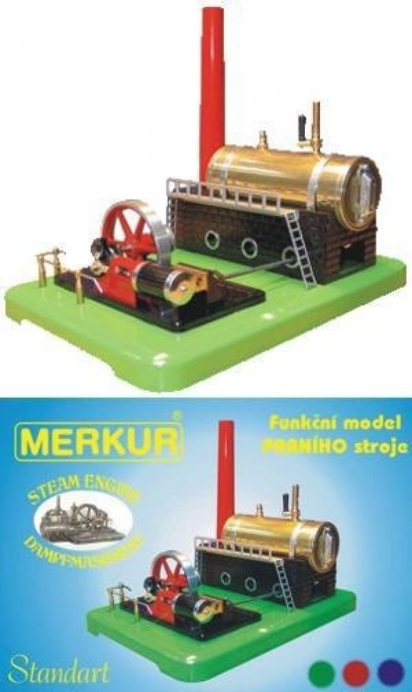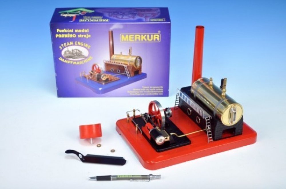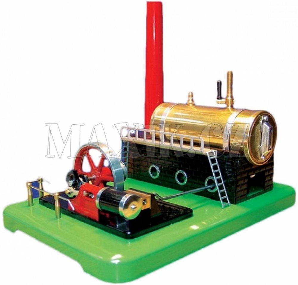 Parní stroj je polytechnická hračka, která představuje model skutečného parního stroje a pracuje na stejném principu. Lze ho použít i pro pohon modelků strojů. Otáčení stroje je v obou směrech. Na základně je upevněno topeniště s parním kotlem, armaturami a frém s parním válcem a rozvodovým a klikovým mechanismem. Pára se přivádí od kotle přívodovou trubkou. K topení se používá pevného lihu.