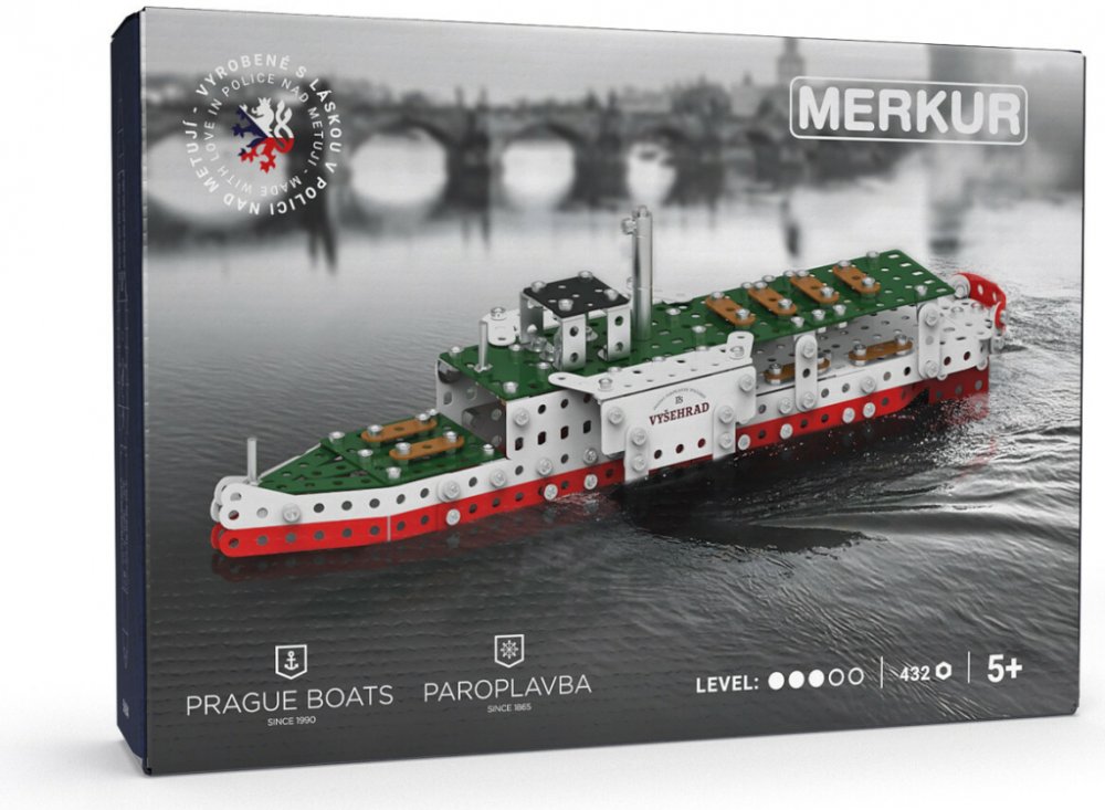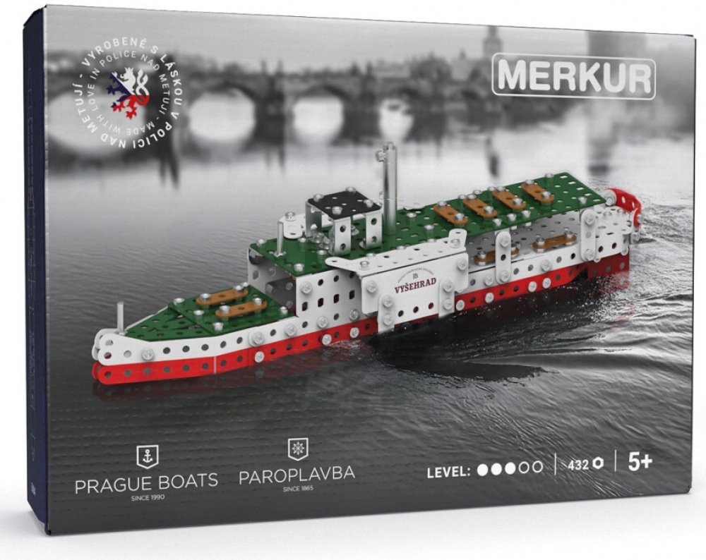 Ponořte se do světa kreativity a zábavy se stavebnicí Merkúr – Parník Vyšehrad. Tato limitovaná edice parníku Vyšehrad vznikla ve spolupráci s Prague Boats, která tento rok oslavuje 160 let paroplavby.