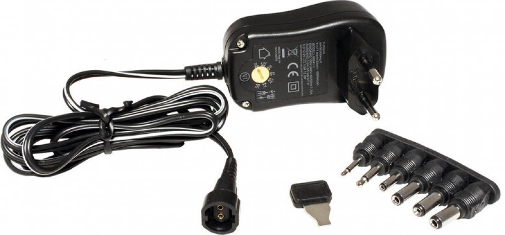 Univerzální napájecí zdroj. Popis zdroje: Stabilizovaný spínaný napájecí síťový adaptér. Technické parametry: Výstup: Stabilizovaný Výstupní napětí: 3 / 4,5/ 6 / 7,5/ 9 / 12 V DC Výstupní výkon: 12,5 W Výstupní konektor: Sada výměnných konektorů Typ: Spínaný Vstupní napětí: 100-240 V AC/ 50 Hz Provedení: Síťová vidlice