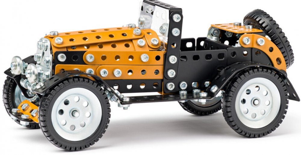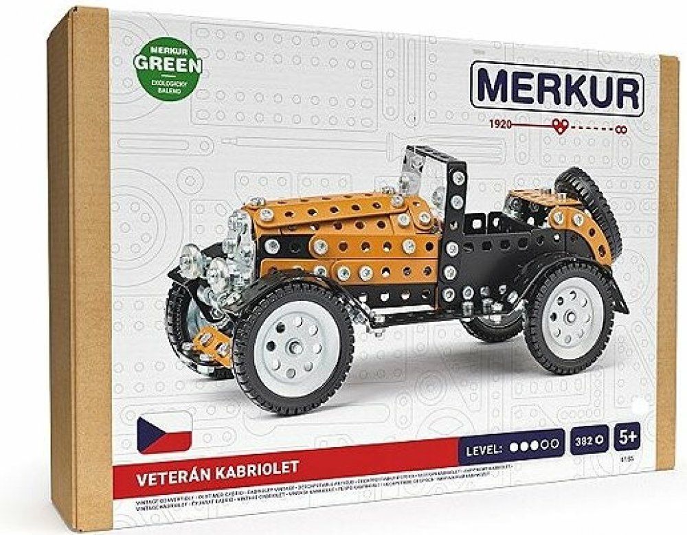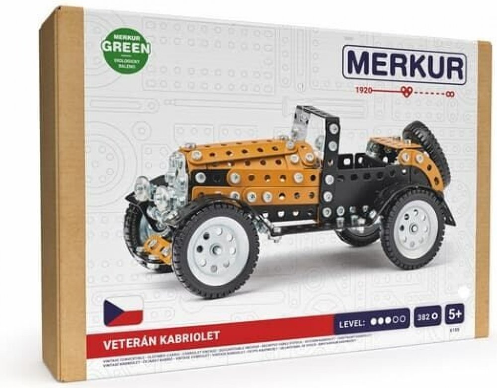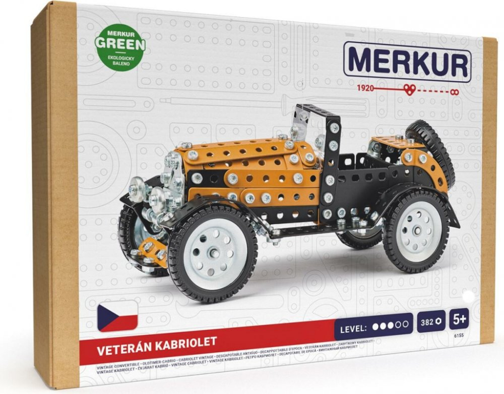 Merkur Veterán Aero kabriolet - jedná se o stavebnici kde si můžete složit kovový model auta. Tato jedinečná sada je ideálním nástrojem pro rozvoj technických dovedností a představivosti dětí. Díky kovovým dílkům si malí stavitelé mohou postavit veterán Aero. Stavebnice obsahuje kvalitní kovové díly, které se snadno spojují šroubky, což podporuje rozvoj jemné motoriky, logického myšlení a soustřed...