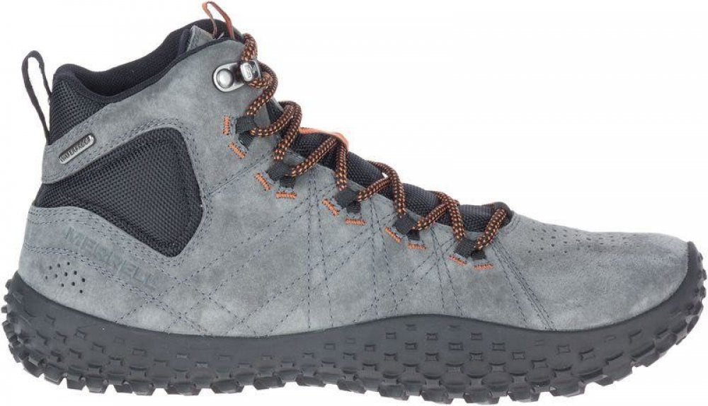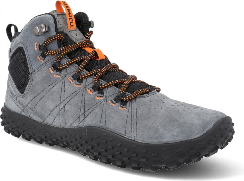 Barefoot boty WRAPT MID WP od značky MERRELL jsou všestranné vycházkové boty s agresivní pryžovou podrážkou navržené tak, aby napodobovaly tvar lidské nohy a udržovaly nohy naboso v přirozené, optimalizované a pohodlné poloze. Díky všitému jazyku a kotníkovému střihu se eliminuje vniknutí nečistot do bot. Současně je svršek vyrobený z kůže, která je přirozeně prodyšná a poskytuje maximální ochranu před vnějšími vlivy jako jsou kameny, větve a jiné. Vodotěsná membrána chrání boty zevnitř i z venku před vlhkostí a vodou. Tradiční šněrovací systém Pohodlné, odolné, všestranné a moderní Prodyšná podšívka z materiálu Mesh a vepřovice Vibram® Megagrip® podešev se speciálními výstupky pro skvělou přilnavost při tréninku a ostrých změnách směru Výška podešve včetně (pata/špička): 9,5/9,5 mm DROP: 0 mm Hloubka vzoru podešve 4 mm; výška podešve bez vzoru 5,5 mm Vibram® MegaGrip Podešev pro skvělou přilnavost a trakci na suchém i v mokrém prostředí. PORON® VIVE PORON® Vive nabízí dlouhotrvající pohodlí a výkon. Poskytuje spolehlivé tlumení o menší váze a rozměrech při zachování plného tvaru i po dlouhodobém používání. Díky aktivaci energie v každém kroku tento materiál nabízí pocit pružnosti, který přechází z jednoho kroku do druhého. Výsledkem je snížení přenosu energie na klouby a svaly, což minimalizuje celkovou únavu. BAREFOOT Anatomický tvar poskytuje přirozený komfort. Adaptivní materiály a minimalistická konstrukce. Nulový sklon podešve přináší přirozenou chůzi.