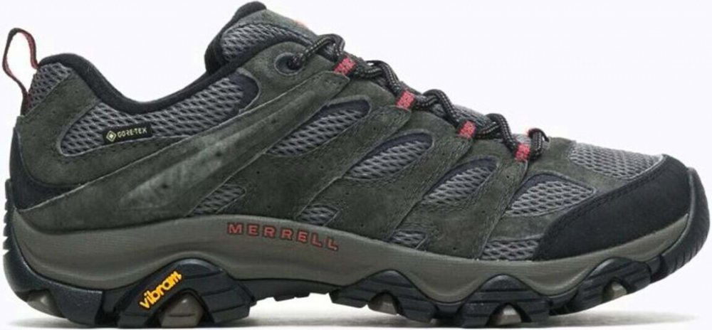 Merrell nízké kůže 862 g Gore-Tex na středně náročný terén na jednodenní turistiku šedá pohorky Moab 3 Gore-Tex, Vibram TC5+ jarní/letní/podzimní na šněrování s vyjímatelnou stélkou s plnou výbavou na středně náročnou turistiku se středně tuhou podešví EVA Vibram s výstuhou u prstů