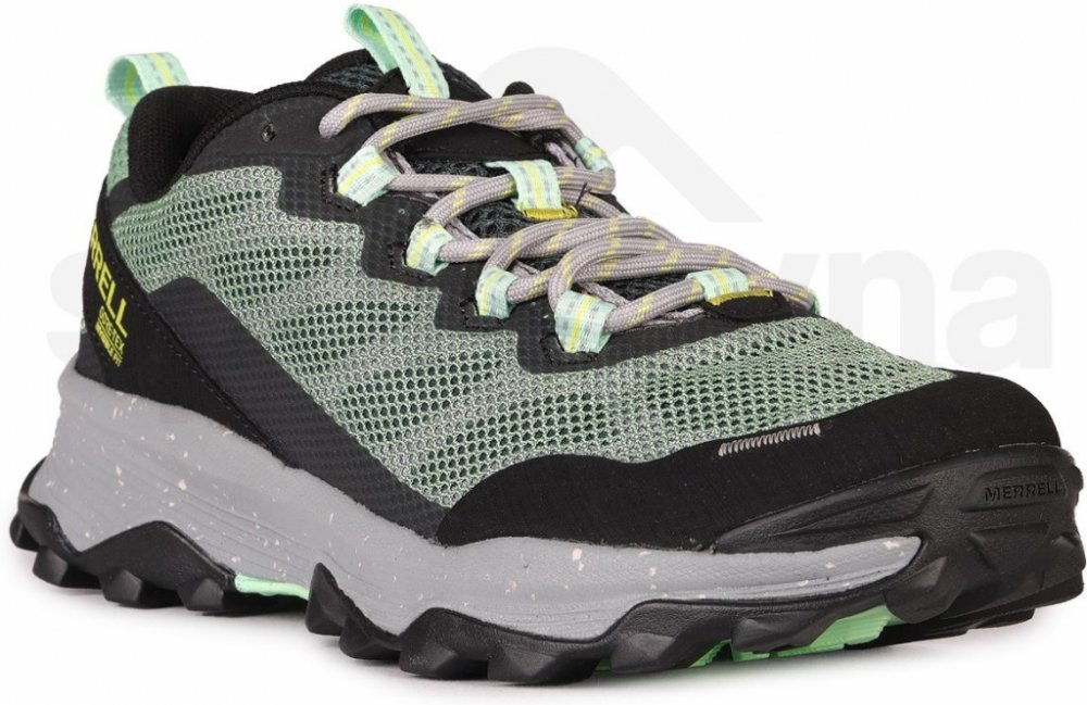 Trekové boty Merrell SPEED STRIKE GTX jsou atletické a nabízí především vynikající přilnavost a pohodlí při outdoorových dobrodružstvích. Při výrobě byly použity i plně recyklovatelné materiály. Membrána Gore-Tex® zajišťuje nejen voděodolnost ale také dobrou prodyšnost. Zesílená ochrana špičky zajišťuje bezpečí chodidel i v náročném terénu. Podšívka ze síťoviny je rovněž plně recyklovatelná. Prodyšný materiál Mesh Tradiční sněrování z recyklovatelného materiálu Mezipodešev EVA z lehké pěny Gumová podešev Merrell zajišťuje odonou trakci a přilnavost k terénu RECYCLED Recyklované materiály V Merrellu neustále hledají příležitosti, jak efektivně využít recyklovaných materiálů v jejich produkci. Ať už se jedná o výrobu tkaniny z plastů či odpadu nalezeného v oceánech nebo zužitkování odpadového materiálu z výroby, jejich mise má jasný cíl – maximálně využít potenciálu, jež recyklované materiály nabízí. GORE-TEX® Membrána GORE-TEX® s miliardou mikroskopických pórů na čtvereční centimetr je nejlepší zárukou voděodolné, a přitom vysoce prodyšné obuvi. MERRELL společně s firmou Gore-Tex vyvinul různé typy membrán navržených přímo na míru jednotlivým řadám značky MERRELL. Membrána je nyní dokonale přizpůsobená typu obuvi. Lehkou botu určenou pro sportovní aktivity membrána zbytečně nezatěžuje, je maximálně prodyšná a flexibilní. U kožené boty na vysokohorskou turistiku, najdeme membránu silnější a odolnější. EVA Materiál s pórovitou strukturou vyznačující se velmi nízkou hmotností a vynikajícími tlumícími vlastnostmi. EVA = Ethyl Vinyl Acetate.