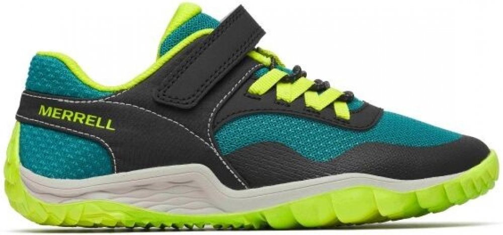 Dětská /junior barefoot obuv. Minimalistická bota pro maximální spojení s terénem a volnost pohybu. Prodyšný svršek ze síťoviny umožňuje proudění vzduchu, extra přilnavá podešev zvyšuje trakci a alternativní zapínání pomáhá snadnému nazouvání a vyzouvání. V zelené barvě v kombinaci s černou a žlutou.