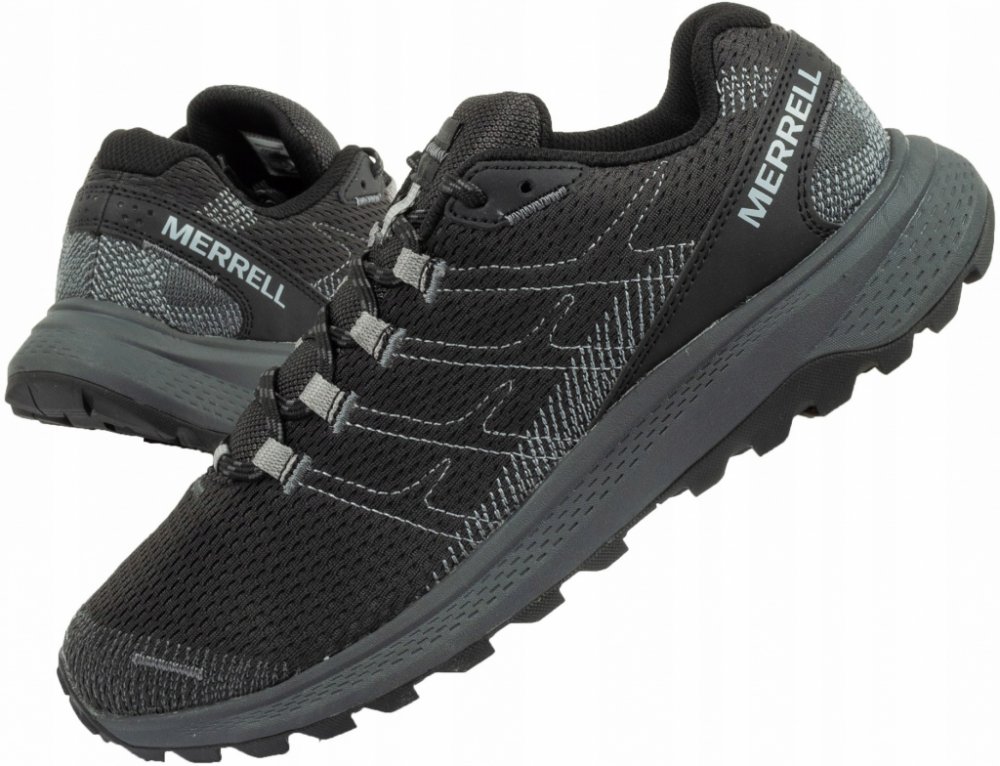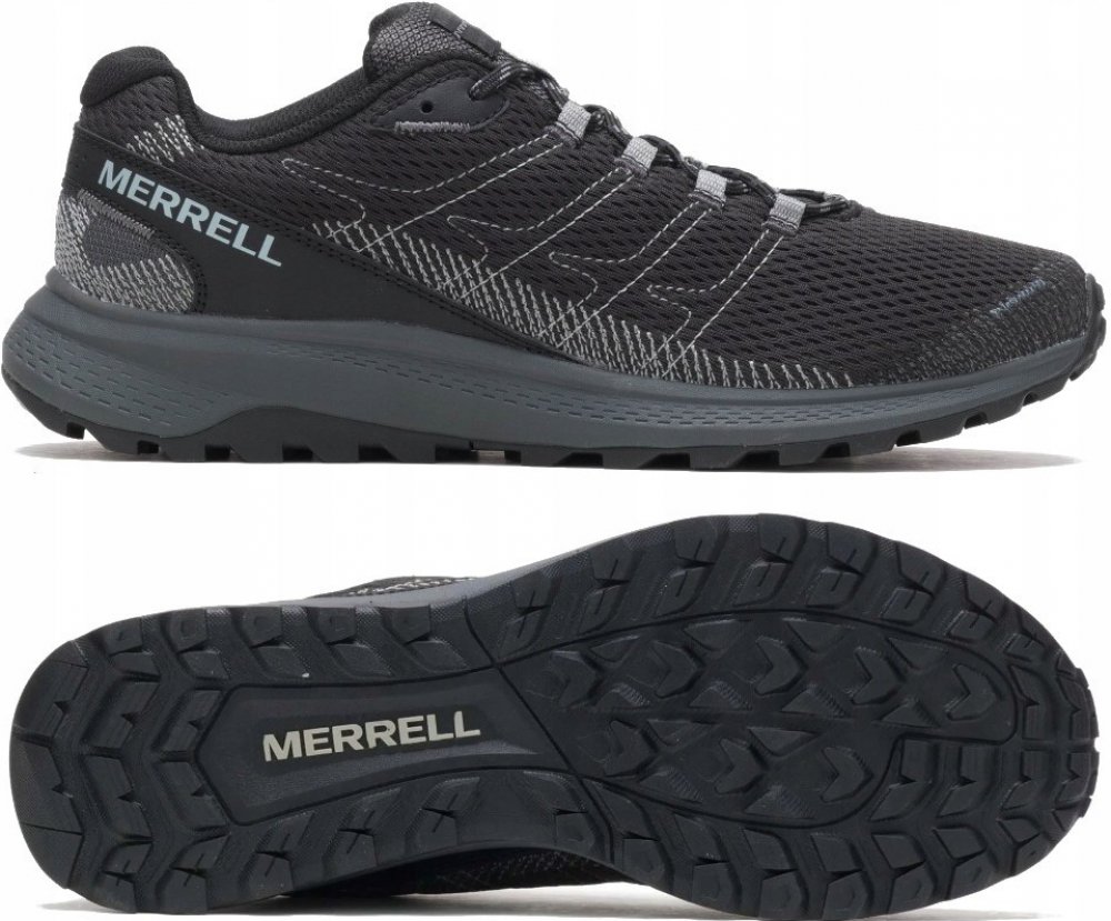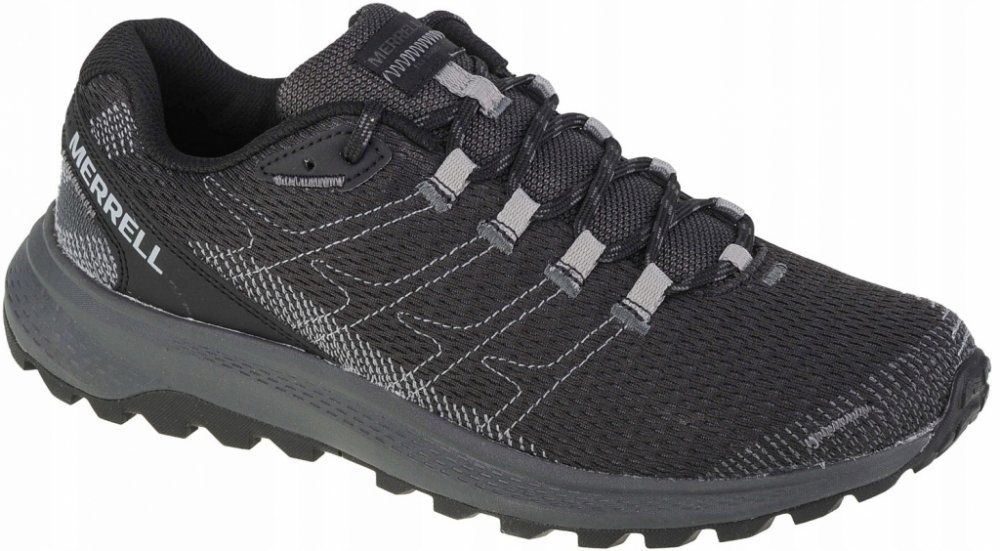 Merrell trailové jarní/letní/podzimní nízké tlumení tréninková pro začátečníky 340 g 0 mm černá síťovina úzké s tkaničkami pro lehký trail