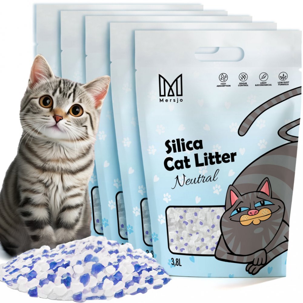 5x Mersjo Neutrální silikonové stelivo pro kočky 3,8LSilikonové stelivo pro kočky Mersjo Neutral mění pravidla hry pro majitele koček!Nabízí bezproblémové a bezzápachové řešení pro udržování čistoty v záchodové míse.Zde je důvod, proč je stelivo pro kočky Mersjo Neutral ideální volbou pro vašeho chlupatého přítele: VÝHODY:100% přírodní složky100% biologicky odbouratelnéIdeální pro citlivé kočkyBezprašnéŠetrný k tlapkám - zaoblené krystalky jsou měkké pro tlapky vaší kočky a poskytují jí maximální pohodlí při používání.Antialergenní a antibakteriální - ideální pro alergické kočkyExtrémně absorpčníNeutralizuje nepříjemné pachy PREMIUM CLASSNaše pokročilé složení pohlcuje a zachycuje vlhkost a pachy, takže váš domov voní svěžestí a čistotou. Uvnitř našeho silikagelu se nachází struktura s mimořádně velkým počtem mikropórů, díky čemuž má Mersjo Neutral vyšší schopnost pohlcovat vlhkost a pachy než většina podobných výrobků na trhu. BEZPEČNOSTSilikonová podestýlka Mersjo je nejvyšší kvality: nevznikají alergie, nešíří se bakterie ani prach po domě.Kočka i její majitel jsou spokojeni. HYGIENA A MIMOŘÁDNÁ SAVOSTCo je důležité na denní bázi, stelivo má elegantní vzhled před i po použití a případné pachy jsou co nejrychleji odstraněny díky mimořádně vysoké absorpční schopnosti krystalů. ŠETRNÉ KE KOČKÁM A PŘÍRODĚMersjo je zcela přírodní stelivo vyrobené z minerálů: k přírodě po použití a bezpečná výroba. POUŽITÍPřed nasypáním steliva do misky jej důkladně umyjte a osušte.Poté naplňte podestýlku 5cm vrstvou steliva.Zhruba po několika dnech je vhodné stelivo vyměnit a vaničku důkladně umýt.Nezapomeňte: Kočičí stelivo zahrabané ve vaničce by se mělo pravidelně odstraňovat vhodnou lopatkou. Podestýlka po navlhčení zežloutne, což vám umožní sledovat její opotřebení; podestýlka absorbuje tekutiny a neutralizuje pachy. Jsme si jisti, že si vy i váš chlupatý přítel zamilujete pohodlí a výhody steliva Mersjo Neutral! VÝROBCEMersjo je značka předmětů pro domácí mazlíčky a jejich pečovatele, včetně majitelů úžasných koček: čistokrevných, domácích, střešních a všech mezi nimi. Dbáme na ekologii a hospodárnost. Výrobky Mersjo mají být prospěšné pro zdraví kočky, peněženku zákazníka a planetu, na které kočka i zákazník žijí.Vítáme všechny kočky a jejich majitele! SPECIFIKACE VÝROBKŮ Název:Silikonové stelivo Varianta:Mersjo NEUTRAL Značka:Mersjo Objem: 5x3,8l Barva: bezbarvás modrými skvrnami Vůně:bez vůně Složení:přírodní silikagel (křemičitan)Hmotnost s obalem: 7,5 kg