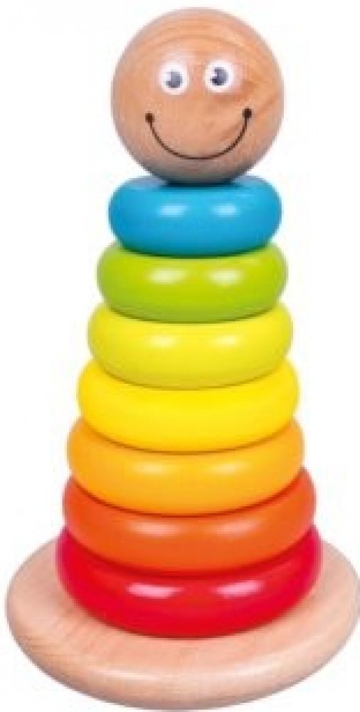 Kroužky se navlékají na stojan. Dřevěná hračka, při které se děti učí poznávat velikosti, posloupnost, protiklady (velký-malý, nahoře-dole) a počítání. Rozvíjí jemnou motoriku a logické myšlení. Tato dřevěná hračka je složena ze stojanu, 7 barevných kroužků a uzavírací hlavičky na vrcholu pyramidy.