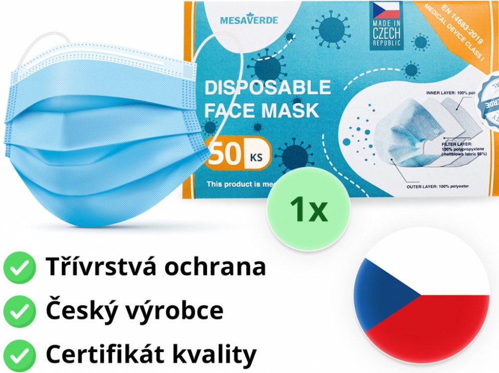Mesaverde jednorázová česká rouška 3 vrstvá modrá 50 ks