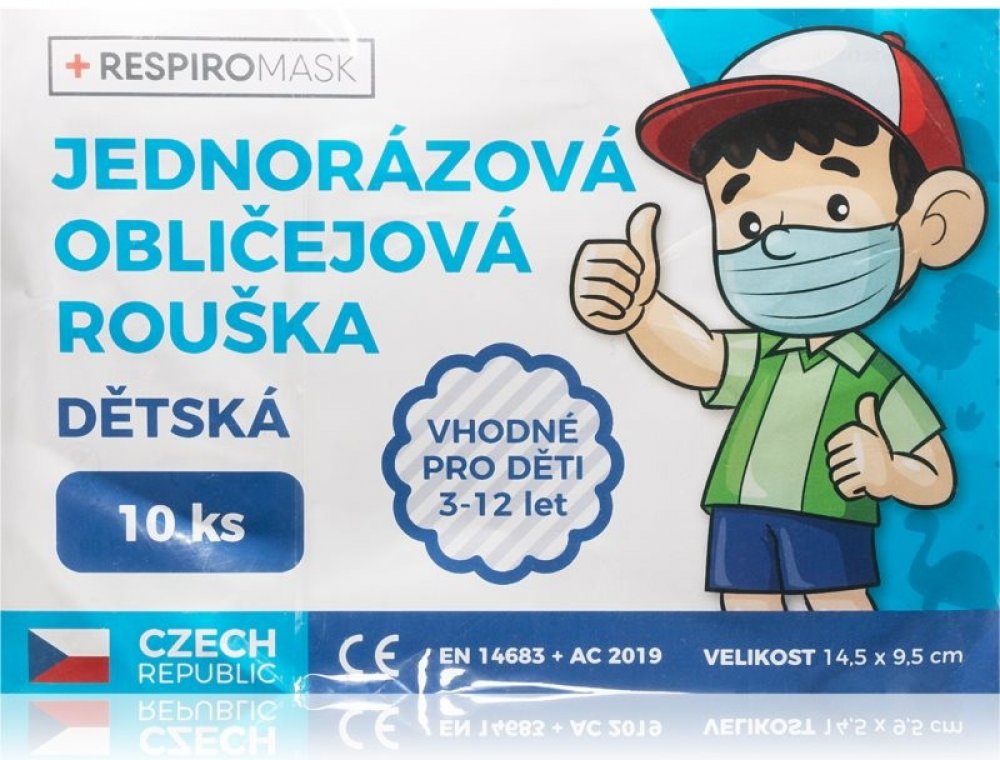 Jednorázová rouška pro chlapce je složená ze 3 vrstev. Na horní straně je zesílená pro lepší přilnutí k obrysu obličeje a je vybavená flexibilní gumičkou, která se přizpůsobí každé velikosti hlavy. Je vyrobená z netkaného materiálu, bez obsahu skelných vláken. Anatomický tvar a měkké okraje zaručují komfort při nošení.