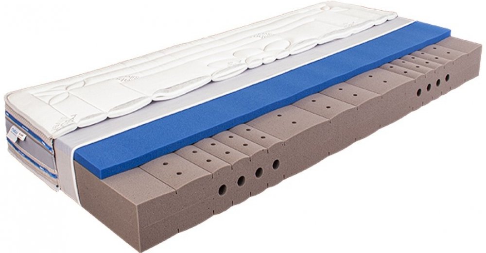 Špičková sedmizónová variabilní matrace vytvořená z nejnovějších materiálů. Středně tuhé jádro z nejnovějších typů HR pěn gramáže 55 kg/m3 a vložená volitelná luxusní lehací vrstva z viskoelastické či studené HR pěny dle Vašeho výběru. Jádro ze špičkové studené HR pěny EUCAFEEL. Mimořádně prodyšná HR studená pěna. Lehací vrstva není přilepena, takže jí můžete kdykoliv měnit. Velmi prodyšné materiá...