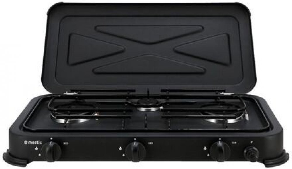 Velký přenosný vařič se třemi hořákyPlynový vařič Mestic GasCooker MGC-300 30 mbar se stane výkonným pomocníkem při vaření na vašich cestách do přírody. Díky dvěma hořákům o výkonu 2,2 kW a dalšímu hořáku 0,85 kW vám pomůže při přípravě jakéhokoli jídla.Pro větší bezpečnost je tento kempingový vařič vybaven elektrickým zapalováním a pojistným ventilem. Víko vařiče zároveň poslouží jako ochrana proti větru.Klíčové vlastnosti plynového vařiče Mestic GasCooker MGC-300 30 mbar:Přenosný kempingový vařič se třemi hořáky (2 x 2,2 kW, 1 x 0,85 kW).Kompaktní rozměry a nízká váha.Elektrické zapalování, pojistný ventil.Parametry plynového vařiče Mestic GasCooker MGC-300 30 mbar:barva: černápočet hořáků: 3palivo: propan butanspotřeba paliva: 382 g/hod. při výkonu 5,25 kW.šířka: 33 cmvýška: 9,8 cmdélka: 60,7 cmhmotnost: 3,9 kgcelkový výkon: 5,25 kWtlak: 30 mbar