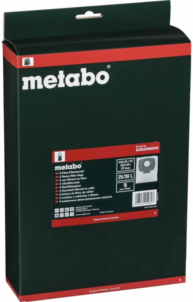 5 filtračních sáčků z netkané textilie - pro vysavače METABO 25/30 l, ASA 25/30 L PC/ Inox