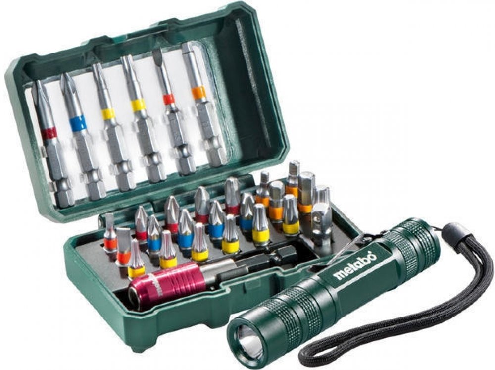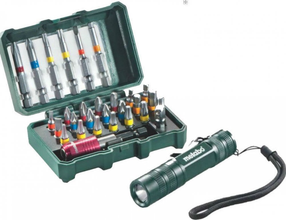 Metabo Box s bity, 29dílný sada bitů + svítilna