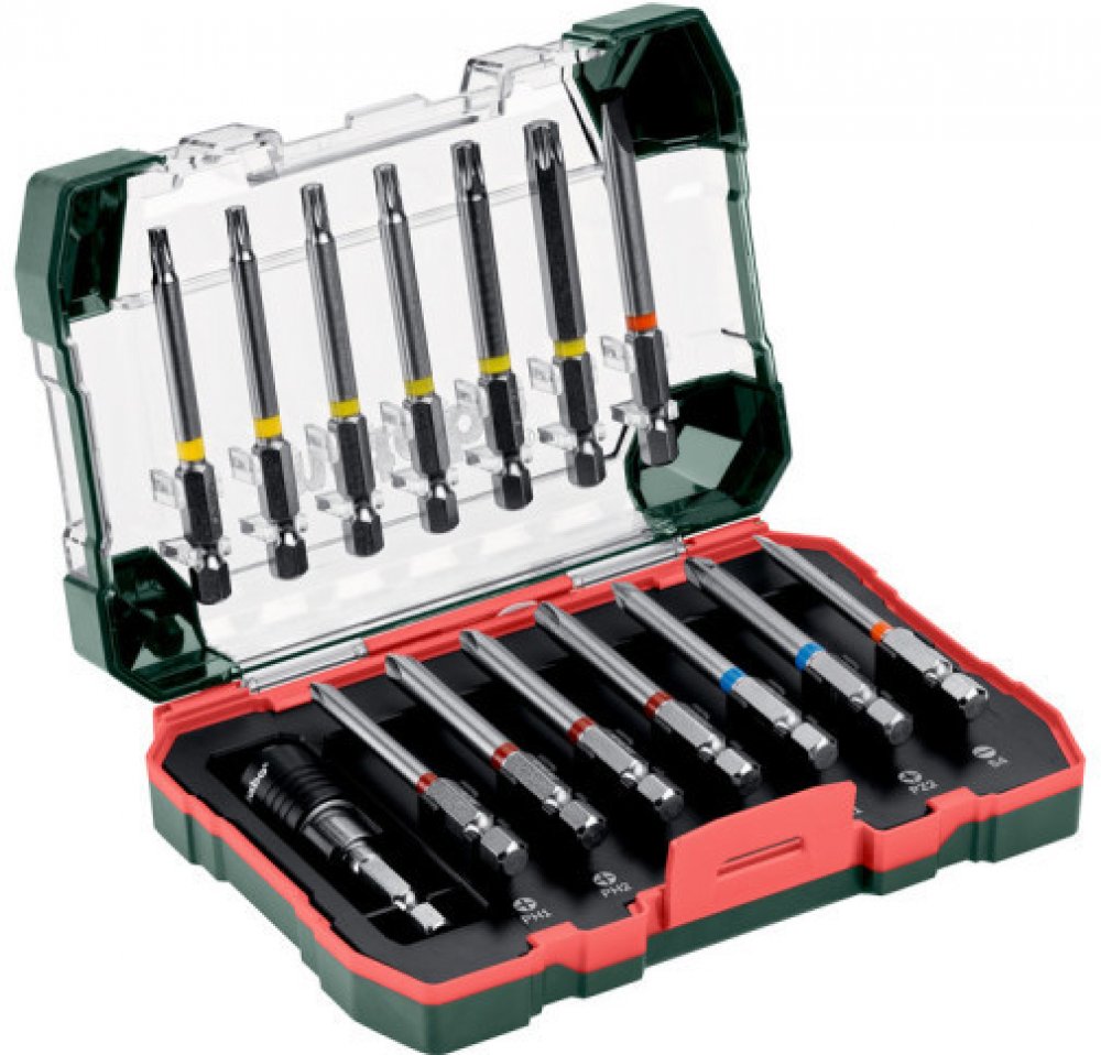 • Bity z chromvanadiové oceli (kvalita S2)• Bity s barevným kódováním pro rychlé a snadné nalezení správného bitu• D=70 mm (14 kusů): PH1 1x, PH2 2x, PH3 1x, PZ1 1x, PZ2 1x, T20 2x, T25 2x, T30 1x, T40 1x, SL4 1x, SL6 1x• 1x magnetický rychlovýměnný držák bitů