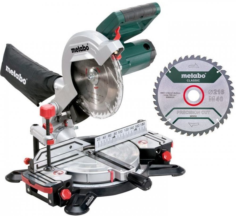 Metabo KS 216 M Lasercut Set - vlastnostiKompaktní a lehký, vhodný i k přenášení jednou rukou. Robustní konstrukce s hliníkového tlakového odlitku pro nejtvrdší požadavky. Jednoduchá přeprava díky ergonomickým rukojetím a zajištění pilové hlavy. Efektivní odsávání třísek integrovaným odsáváním pilin. Rychlé a přesné nastavení běžných úhlů prostřednictvím klidových poloh. Laser k přesnému zobrazení linie řezu (napájený ze sítě, baterie nejsou potřebné). Plynule vytahovatelná rozšíření stolu, snímatelná k podložení dlouhých panelů, lišt atd.. Jasné pracovní LED osvětlení k nasvícení místa řezu (napájené ze sítě, baterie nejsou potřebné). Vysoké, bočně posuvné dorazy pro bezpečné řezání. Materiálová svorka k bezpečné fixaci obrobku shora nebo zepředu. Hlava pily sklopná doleva, s dodatečným rozsahem úhlů pro zadní řezy. Všechny stupnice a ovládací prvky můžete vidět z pracovní polohy a intuitivně je ovládat. Jednoduchá výměna pilového kotouče díky aretaci vřetena; není potřebná demontáž kyvného ochranného krytu. . Rozsah dodávky. Pilový kotouč z tvrdokovu (40 zubů), druhý pilový list z tvrdokovu, 2 integrovaná rozšíření stolu, zkracovací doraz, Materiálová upínka, Nástroj pro výměnu pilového kotouče, záchytný pytel na pilinyMetabo KS 216 M Lasercut Set - výhodyPilový kotouč z tvrdokovu (40 zubů), druhý pilový list z tvrdokovu, 2 integrovaná rozšíření stolu, zkracovací doraz, Materiálová upínka, Nástroj pro výměnu pilového kotouče, záchytný pytel na piliny.Proč si vybrat Metabo KS 216 M Lasercut SetKompaktní a lehký, vhodný i k přenášení jednou rukou, Robustní konstrukce s hliníkového tlakového odlitku pro nejtvrdší požadavky, Jednoduchá přeprava díky ergonomickým rukojetím a zajištění pilové hlavy, Efektivní odsávání třísek integrovaným odsáváním pilin, Rychlé a přesné nastavení běžných úhlů prostřednictvím klidových poloh, Laser k přesnému zobrazení linie řezu (napájený ze sítě, baterie nejsou potřebné), Plynule vytahovatelná rozšíření stolu, snímatelná k podložení dlouhých panelů, lišt atd., Jasné pracovní LED osvětlení k nasvícení místa řezu (napájené ze sítě, baterie nejsou potřebné), Vysoké, bočně posuvné dorazy pro bezpečné řezání, Materiálová svorka k bezpečné fixaci obrobku shora nebo zepředu, Hlava pily sklopná doleva, s dodatečným rozsahem úhlů pro zadní řezy, Všechny stupnice a ovládací prvky můžete vidět z pracovní polohy a intuitivně je ovládat, Jednoduchá výměna pilového kotouče díky aretaci vřetena; není potřebná demontáž kyvného ochranného krytu.