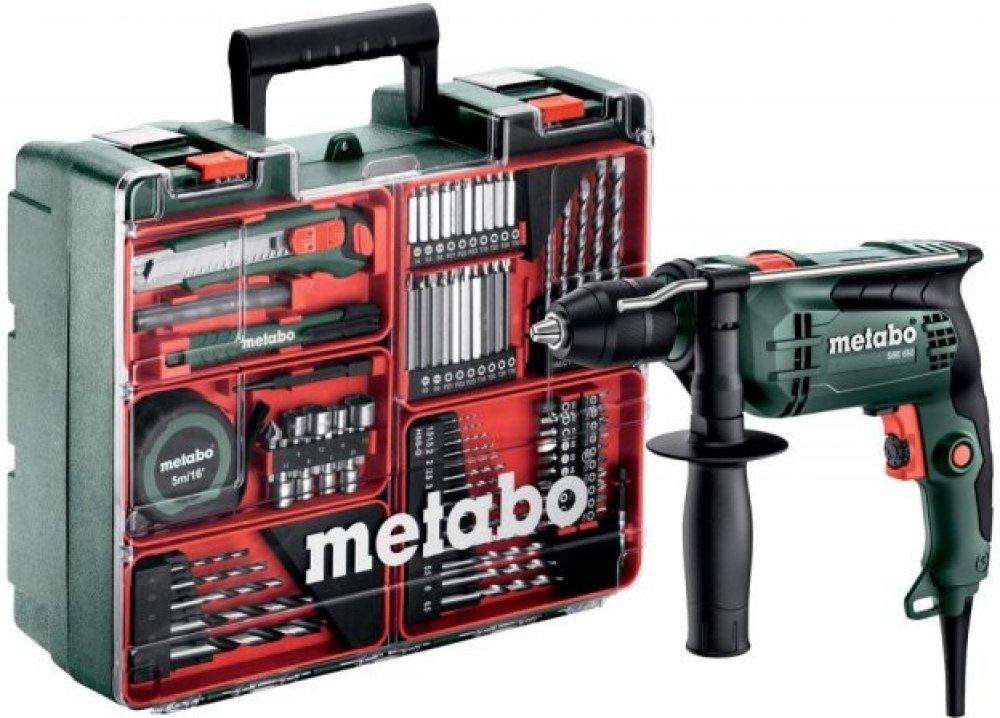 Příklepová vrtačka s příslušenstvím METABO SBE 650 MOBILNÍ DÍLNA Popis produktu příklepová vrtačka METABO SBE 650: Mobilní dílna: Plastový kufr vč. bohatého příslušenství k vrtání, šroubování a více Elektronika Vario (V) k práci s odpovídajícími otáčkami Kolečko pro nastavení předvolby otáček Pravý/levý chod Vřeteno s vnitřním šestihranem pro šroubovací bity k práci bez upínacího pouzdra Parametry...