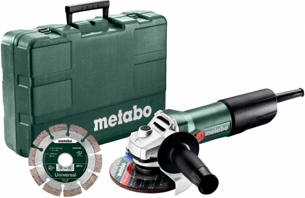 Úhlová bruska Metabo W 850-125 je univerzální stroj určený pro širokou škálu prací. Díky kompaktnímu designu a nízké hmotnosti 1,8 kg je lehce ovladatelná. Motor s výkonem 850 W je ideální pro běžné pracovní úkony s diamantovými kotoučemi i klasickými řeznými kotoučemi 125mm.