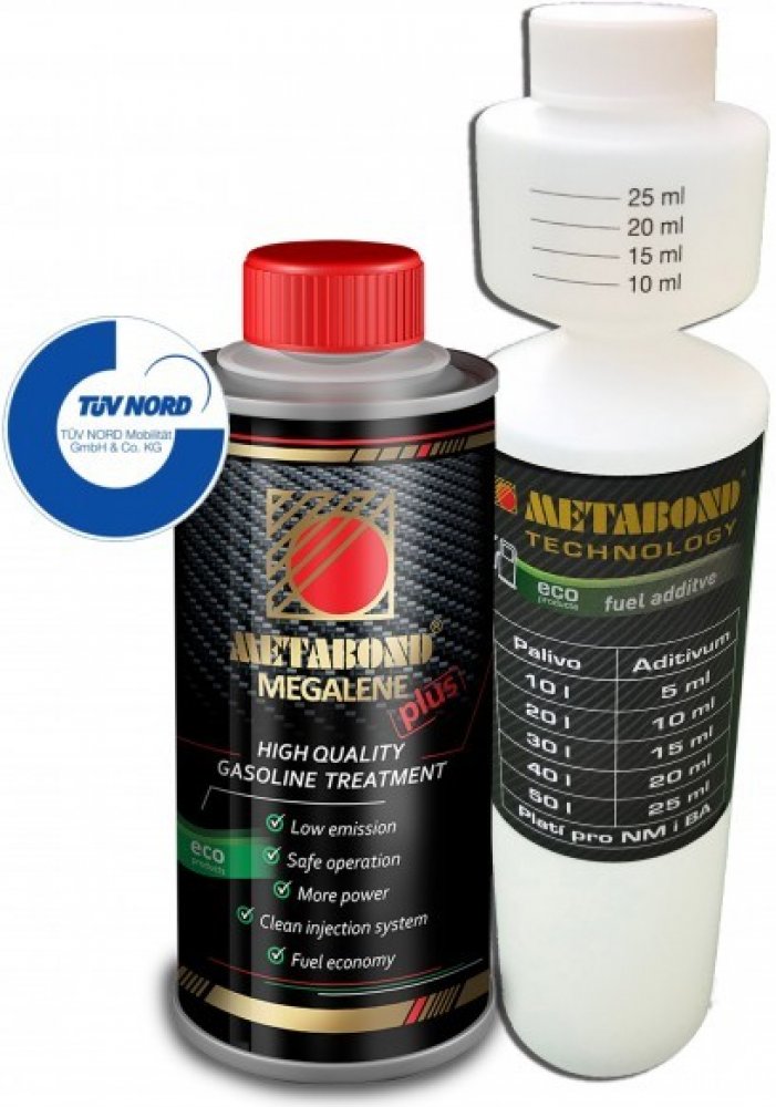 Metabond Megalene Plus je přísada do pohonných hmot pro zážehové motory. Zabezpečuje odolnost proti tření ve všech částech vedení paliva (systém vstřikování, karburátor, písty, válce). Dále rozpouští zbytkovou vodu v nádrži. Voda rozpuštěná v palivu je následně bezpečně odvedena a nezpůsobuje žádné škody v palivové soustavě.