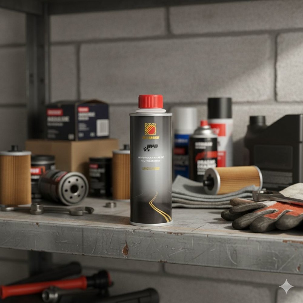 Důkladně protřepejte a přilijte obsah balení do oleje v motoru (je možné přidat do již vyměněného oleje, maximálně však do 3000 najetých km od výměny)