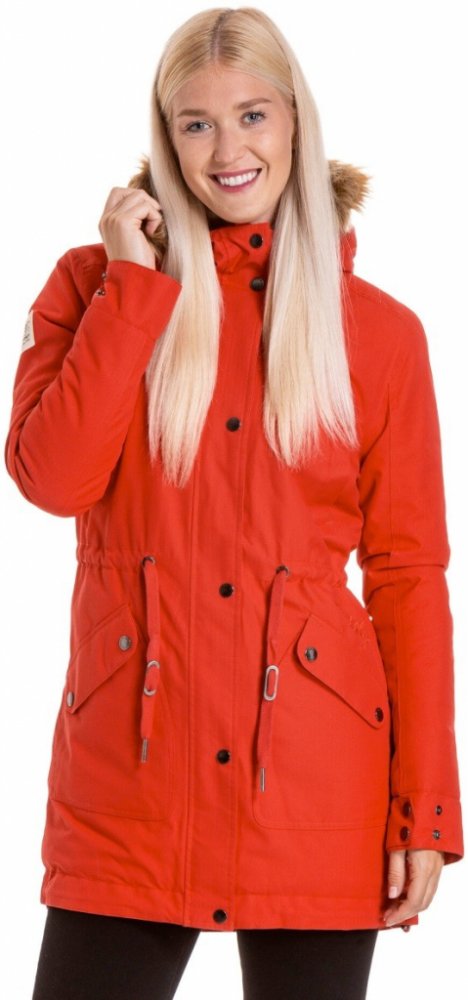 Bunda vyniká výraznými tkanicemi, které zjemňují elegantní kovové doplňky a decentní prošití. Kapsy dvě vnější kapsy na druk ve spodní části dvě vnější náprsní kapsy na druk jedna vnitřní náprsní kapsička na druk Specifikace podlepené švy stahování kapuce stahování v pase stahování spodní části stahování rukávů pomocí druků měkká plyšová podšívka v těle a kapuci odnímatelná kožešina kolem kapuce Materiál 100% Polyester Vlastnosti materiálu Vodní sloupec: 3000 mm Prodyšnost: 3000 gr/m2/24 h.