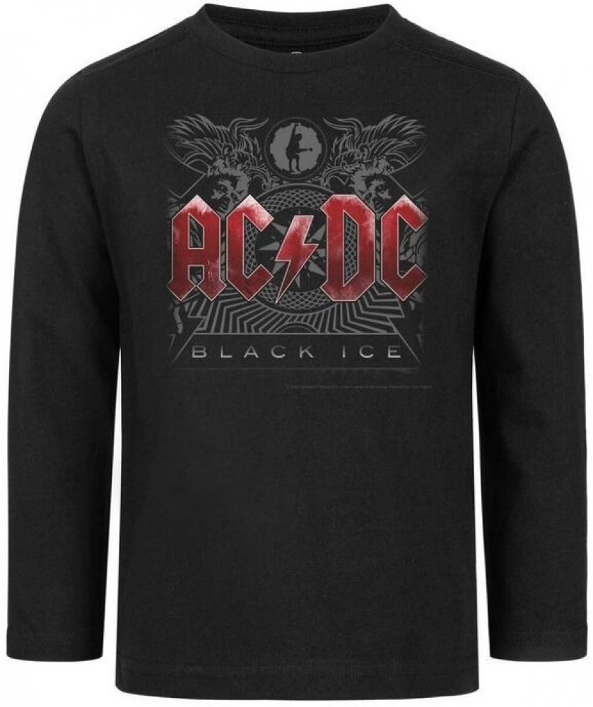 Tričko metal METAL-KIDS AC-DC Black Ice černá tričko DĚTSKÉ velikosti s dlouhými rukávy a předním potiskem.