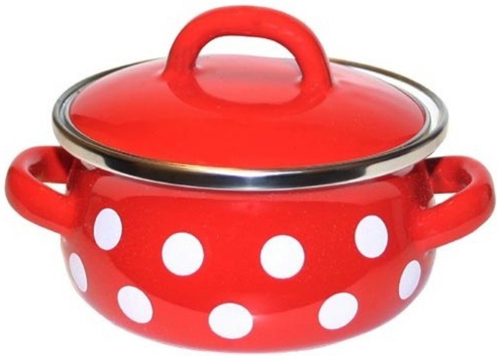 Metalac Červený puntík, mělký smaltovaný kastrol Elegant s poklicí 12 cm, 0,8 l