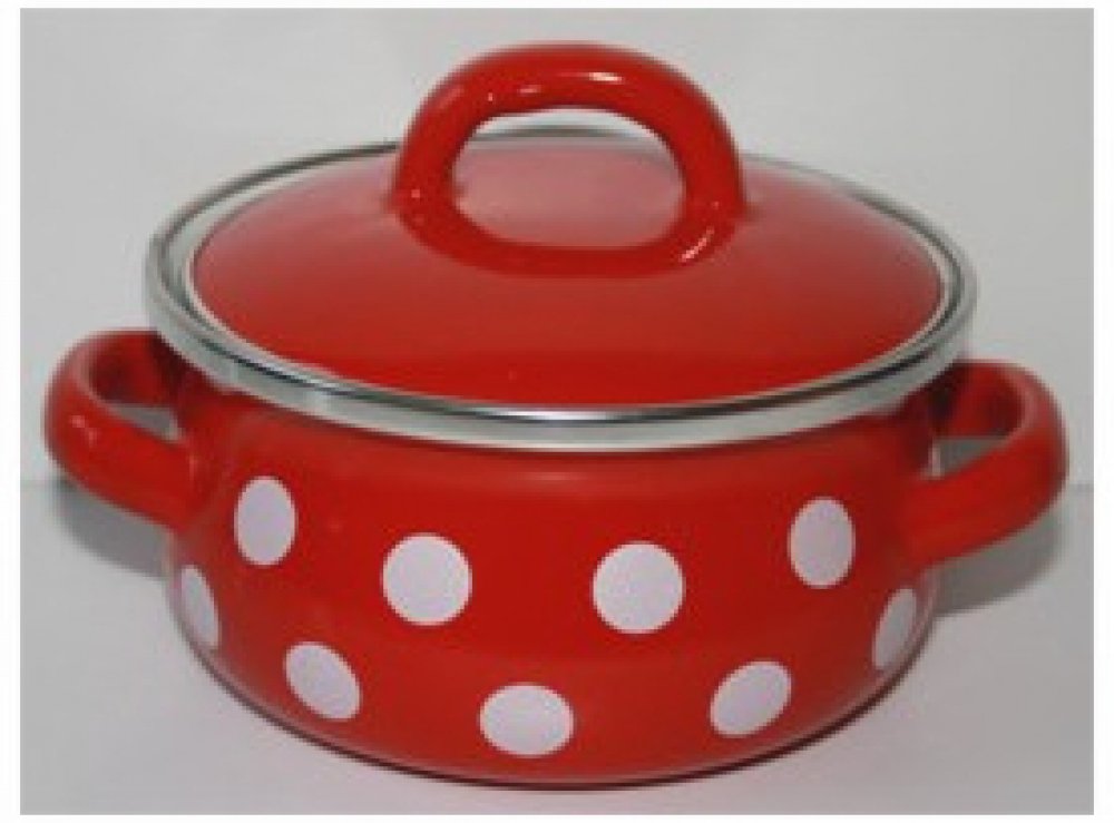 Nabízíme Vám nestárnoucí klasiku na trhu se smalovaným nádobím - červené smaltované nádobí s bílým puntíkem.