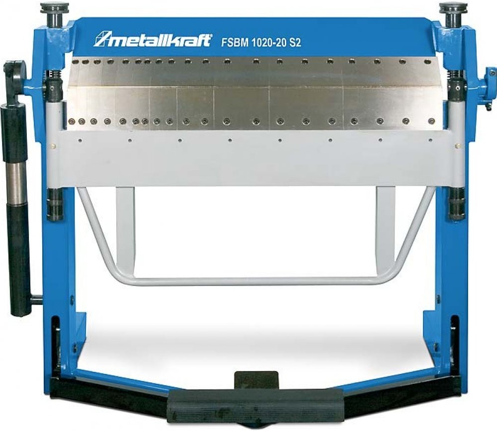 Ruční ohýbačka plechu s nožním ovládáním horní lišty. Univerzálně použitelná pro průmysl a řemeslné dílny.