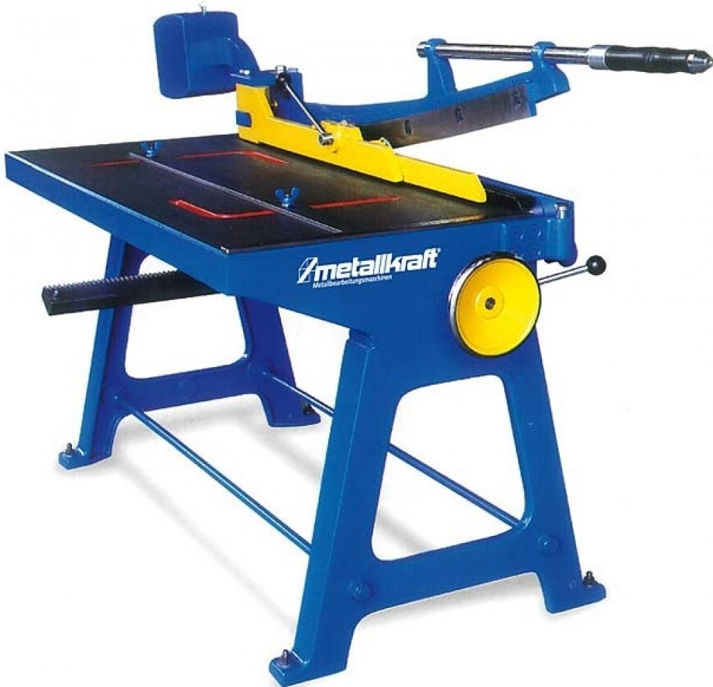 Univerzální pákové nůžky na plech v masivním litinovém provedení pro dílnu a průmysl. Pro plech do tl. 1,5 mm (400 N/mm2) a šířky 1250 mm. Velmi stabilní, masivní litinová konstrukce s vysokou hmotností. Volný průchod umožňuje zpracování plechu ve svitcích. Velký litinový stůl (1500 × 600 mm). Přítlačná lišta zajišťuje perfektní řez. Doraz nastavitelný pomocí ručního kola.