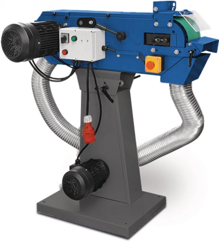 Dvě rychlosti brusného pásu 15/30 m/sKlidný chod bez vibrací pro nejlepší výsledky broušeníPrůběžná čelní brusná plocha umožňuje díky odnímatelným nástavcům broušení i dlouhých obrobkůRychloupínací systém umožňuje rychlou výměnu brusného pásuLze použít s odsáváním i bez nějSnadné nastavení vedení pásu pomocí seřizovacího šroubu na předním kontaktním válciAutomatické napínání brusného pásu díky pružinovému systému napínání pásuPlynulý náklon brusné jednotkySklopný ochranný štítTechnické specifikaceRozměry brusného pásu2000×75mmRozměry brusné podložky495 × 75 mmRychlost brusného pásu15/30 m/sPrůměr kontaktního kola200 mmPrůměr odsávacího nátrubku2 × 100 mmPříkon2,5 / 3,3 kWElektrické připojení400 VRozměry (š × v × h)980×1100×460 mmHmotnost98 kgRozsah dodáníBrusný pás P 80Vak na prach2x hliníková odsávací hadice Ø100mm