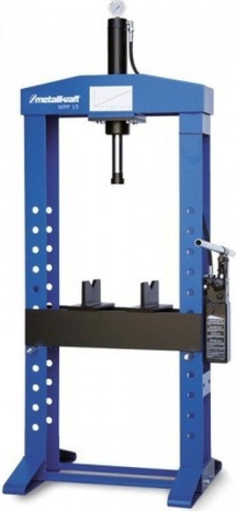 Hydraulický sloupový lis s ruční pumpou. Pro všechny opravářské a montážní práce, např. rovnání os, nosníků, hřídelí apod. vylisování a nalisování ložisek, svorníků a pouzder; zátěžové zkoušky a zkoušky svárů a mnoho jiných.