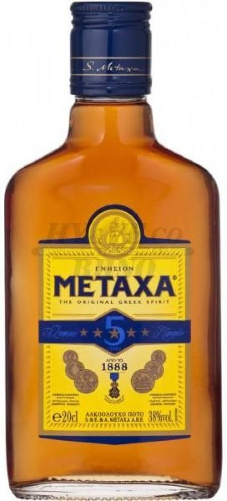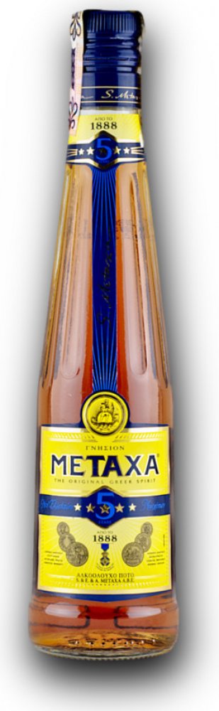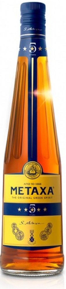 METAXA® 5* je originální a jedinečný řecký nápoj, který díky své unikátní receptuře nemá ve své kategorii obdoby. Specifickou chuť mu dodává pečlivě vybrané sladké víno Muskat, vynikající vinné destiláty a směs středomořských bylin a rostlin, což zajišťuje jeho jemnost a svěžest s ovocnými tóny. Tento nápoj je klíčovým členem kolekce Metaxa a představuje zářivý příklad řemeslné dovednosti.
