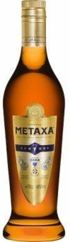 Metaxa 7* 0,7 l - Brandy vyzrálé nasládlé chuti se stopami vanilky, přitažlivá barva tmavého jantaru svádí k pití.