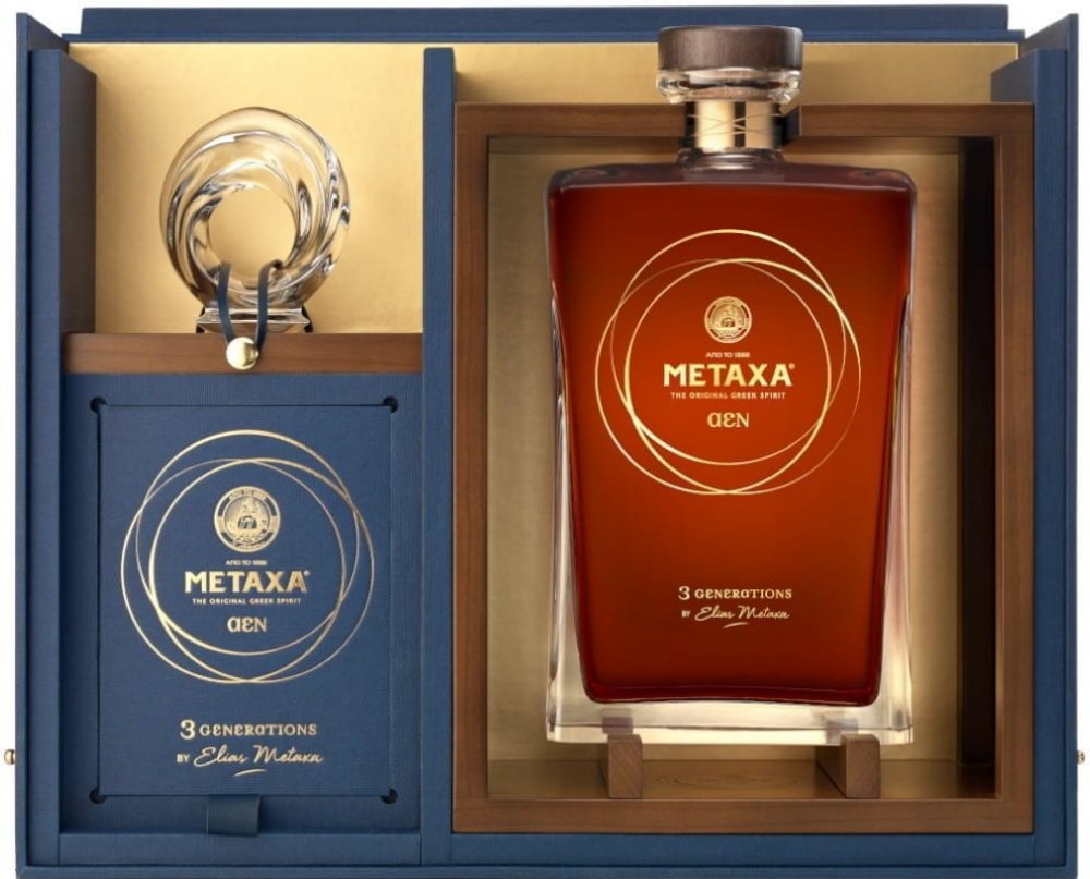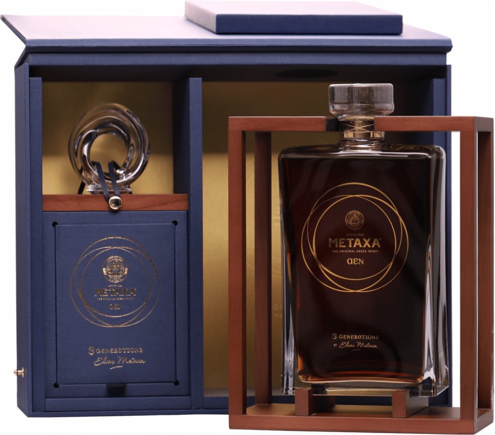 METAXA AEN Three Generations je třetí „AEN“ této značky. Pro znalce vyzrálých ušlechtilých destilátů přináší skutečně vytříbený zážitek. Mohla vzniknout díky výjimečným zásobám vinných destilátů, které se v rodině Metaxa dědí již od doby založení značky. Vyniká bohatstvím jemné chuti a přináší neopakovatelně výrazný a přitažlivý smyslový zážitek. Samotný základ METAXA AEN Three Generations položil Elias Metaxa již v roce 1980, když z výjimečných zásob vzácných destilátů, jež mu zanechal jeho otec Andreas, který je sám zdědil od svého otce Spyrose, zakladatele značky, namíchal opravdu jedinečnou směs. Po desetiletí byla pečlivě chráněná a zrála nejprve ve sklepích palírny v Pireu, poté ve sklepích palírny v Kifisii a nakonec přímo v rodinném sídle. Výsledkem je vzácný destilát, který byl v roce 1980 namíchán pro budoucí generace, a který je nyní představen světu ve své nejvyšší kvalitě. METAXA AEN Three Generations je vyrobena z muškátového vína z ostrova Samos a z vyzrálých vinných destilátů stárnoucích po desetiletí a je tak ztělesněním značky Metaxa a především oslavou toho, co je dnes známkou nejvyššího luxusu – času. Času, kdy zrají hrozny, času, kdy Metaxa masteři zdokonalovali své řemeslo, a učili se od svých předchůdců, a konečně času, kdy nápoj v sudech dozrával do dokonalé chuti. Je to umění, které nelze uspěchat, je to tradice v každém doušku. Slovo AEN znamená v řečtině věčnost a METAXA AEN Three Generations je věčnou připomínkou a poctou třem hodnotám – tradici, terroiru a řemeslu, které se projevují v každé její kapce. Vyrobeno pouze 1.000 láhví.