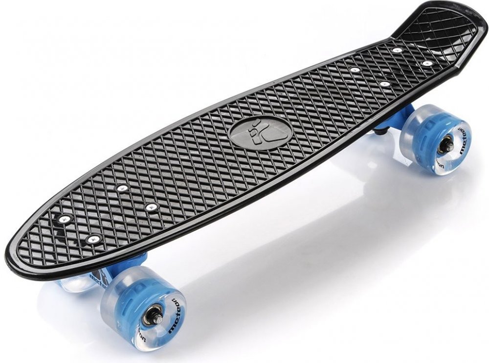 Skateboard pennyboard MTR ve stylovém barevném provedením s blikacími LED kolečky, s kterými zazáříte kdekoliv. Doporučené použití je pro jízdu ve městě nebo pro jednoduché triky ve skateparcích. Deska je vyrobena z tvrzeného plastu (PP). Na horní straně je skateboard vybaven protiskluzovou mřížkou, která zabraňuje nečekanému sklouznutí. Odolná kolečka o rozměru 60 x 45 mm jsou vysoce přilnavá a s...