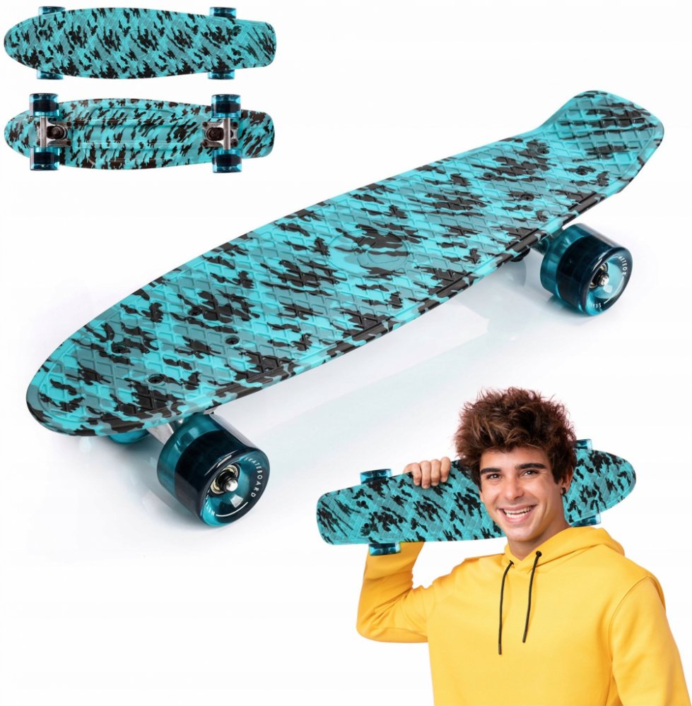 Nejnovější model skateboardu Meteor. Plastový skateboard Flip je ideální pro jízdu ve městě po přeplněných chodnících. Je velmi lehký a výrazně menší než běžné skateboardy, což umožňuje jednoduchou a rychlou změnu směru a dokonalý pohyb. Protiskluzový povrch zabraňuje sklouznutí ze skateboardu a polyuretanová kolečka se dokonale přizpůsobí povrchu a tlumí nárazy. Skateboard je vyrobený z kombinace...