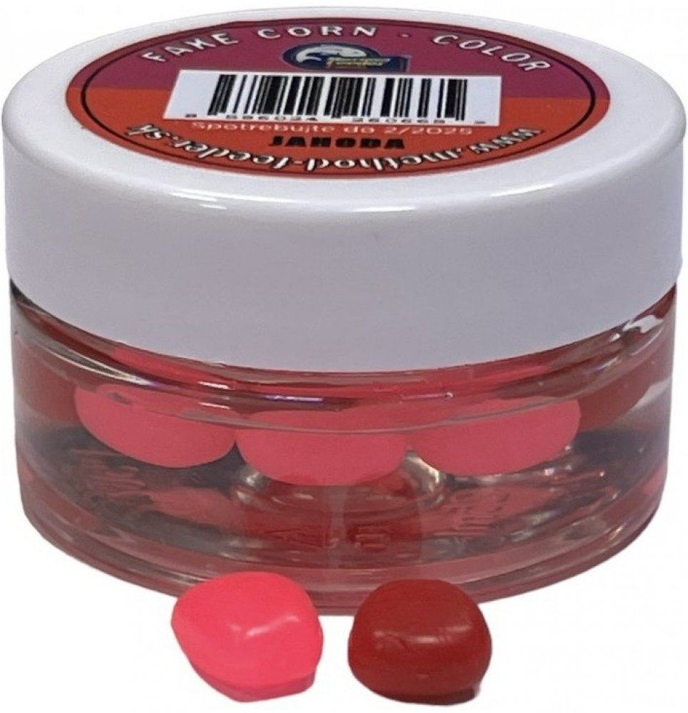 Fake Corn Color je umělá porézní plovoucí kukuřice zalitá v prvotřídní esenci. Dvě atraktivní barvy. Můžete nastražit přímo na návnadový trn nebo na vlasový přívěs. Po skončení lovu můžete kukuřici znovu vložit do dózičky, nadipovat a opakovaně použít.