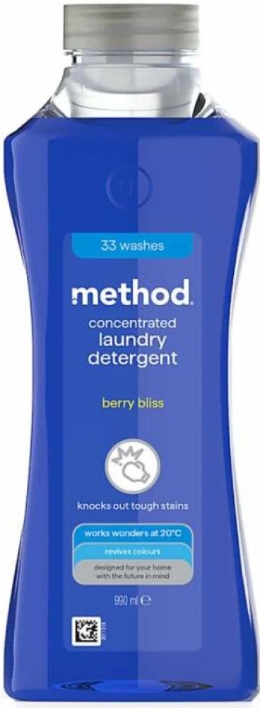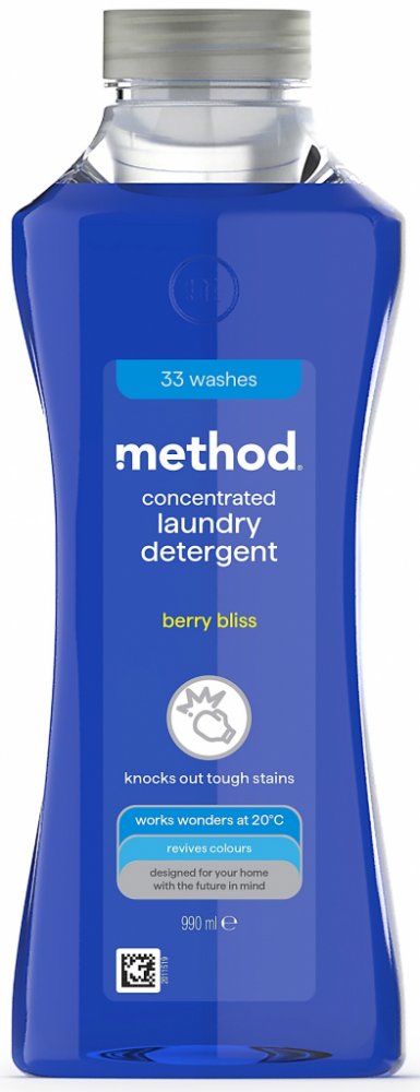 METHOD tekutý prací prostředek Bobulová blaženost (Berry Bliss) je účinný a ekologický prací gel s ovocnou vůní lesních plodů, který si poradí s odolnými skvrnami a oživí barvy už při nízkých teplotách. Využívá rostlinné ingredience a je dermatologicky testovaný.