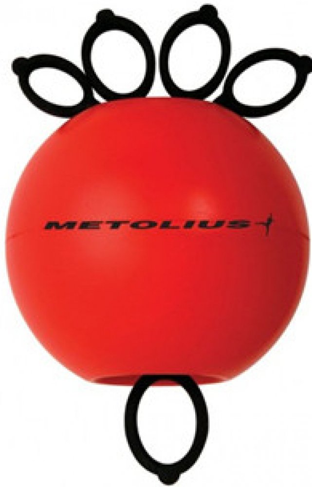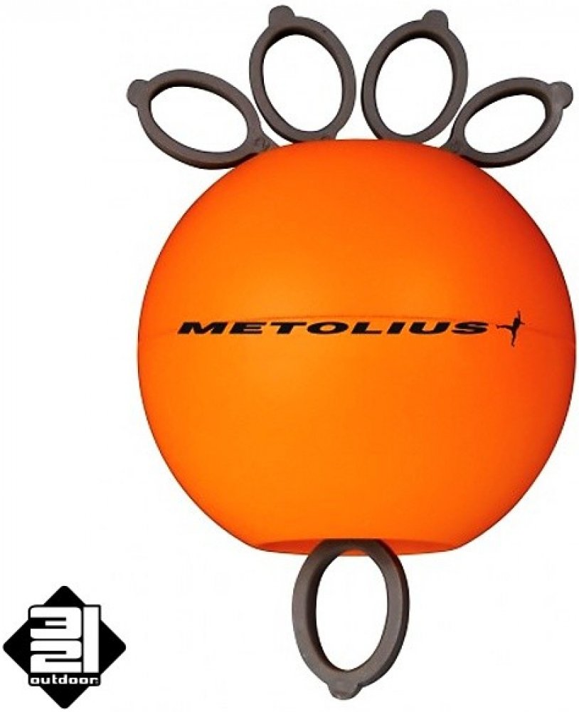 Metolius Gripsaver, příruční tréninková pomůcka. Slouží k posílení zápěstí, předloktí a vyváženému tréninku prstů. Střídavým stlačováním balónkem a roztahováním gumových návleků trénují prsty v obou směrech. Lze využít i při rehabilitaci. Výsledek se dostaví rychle.